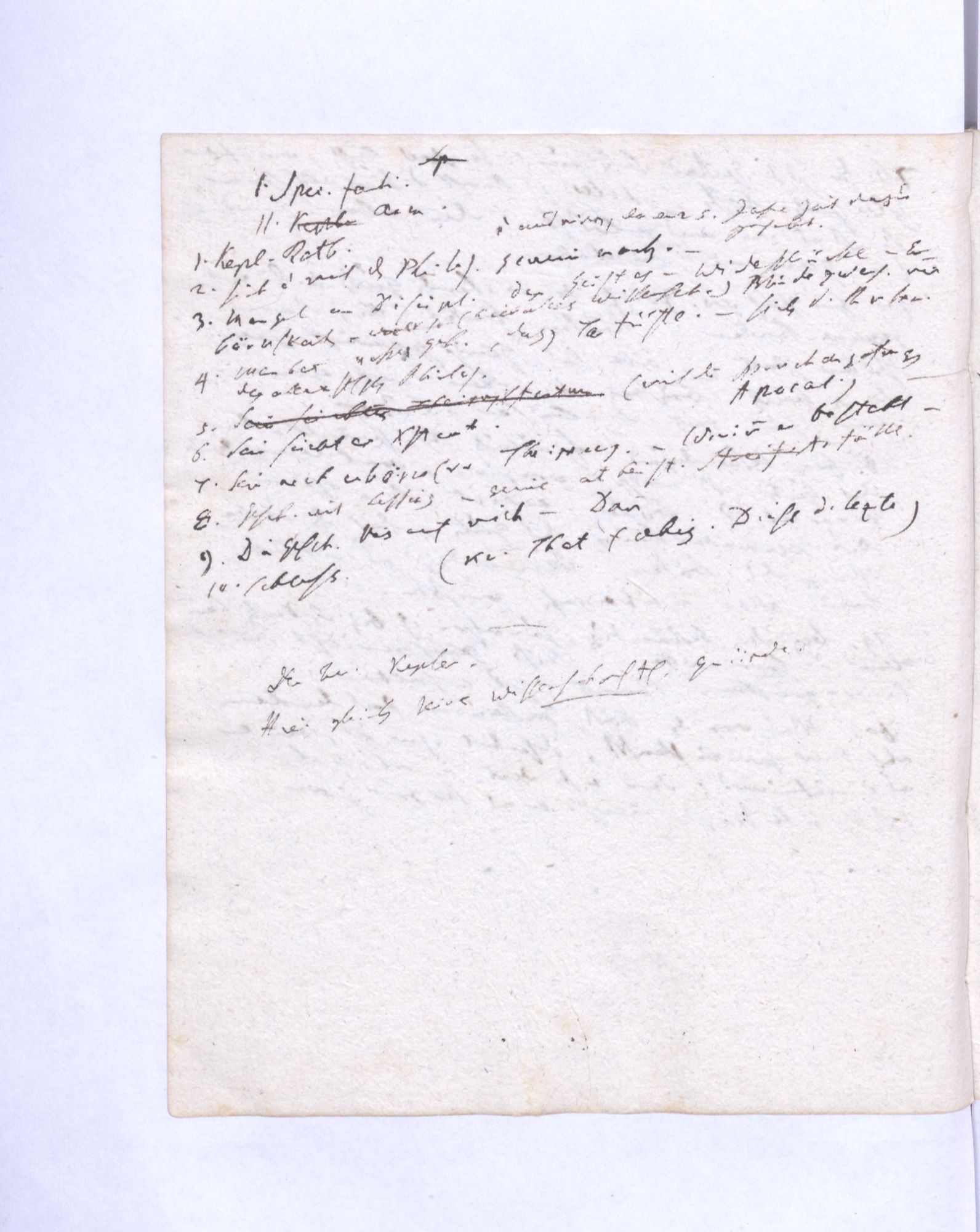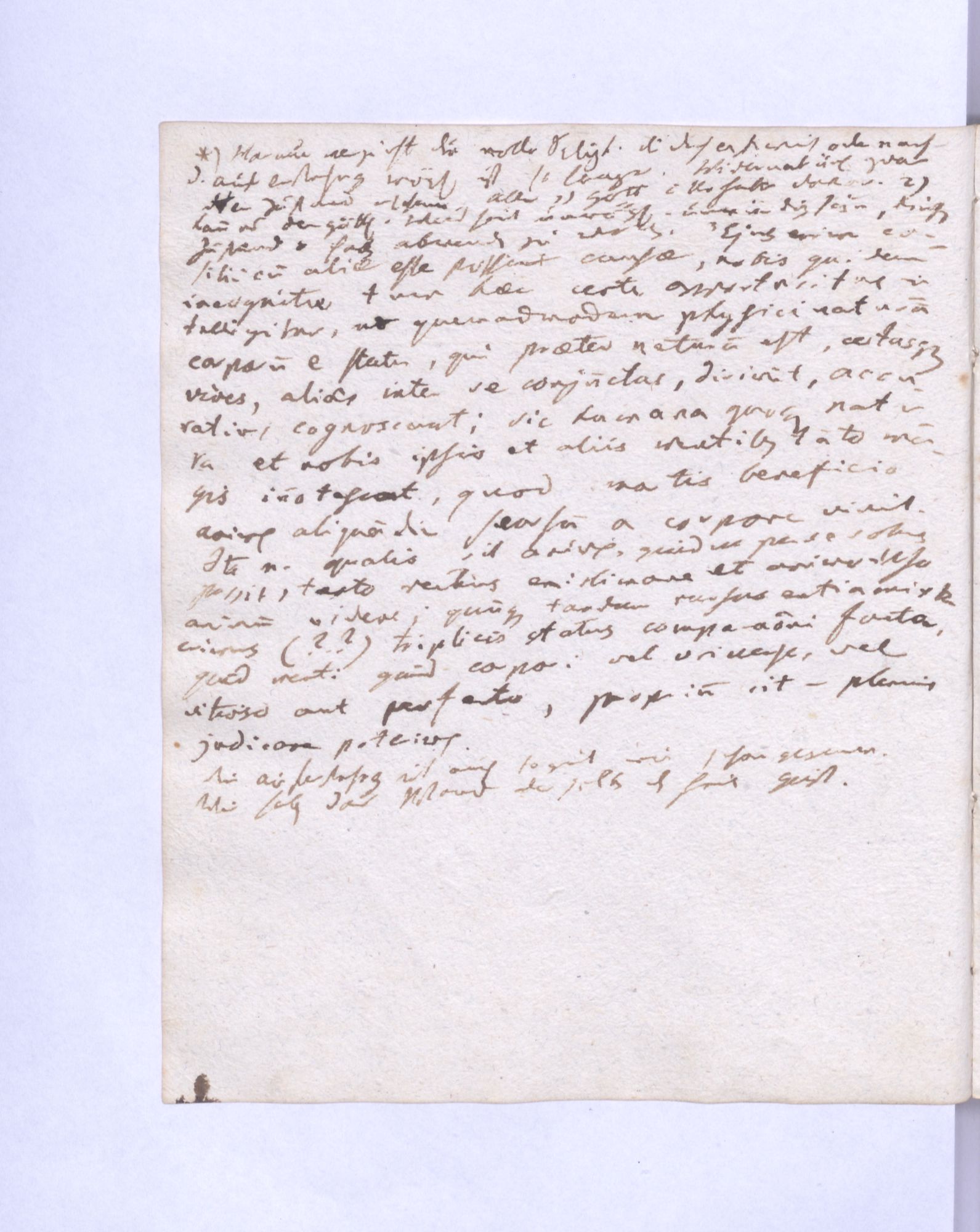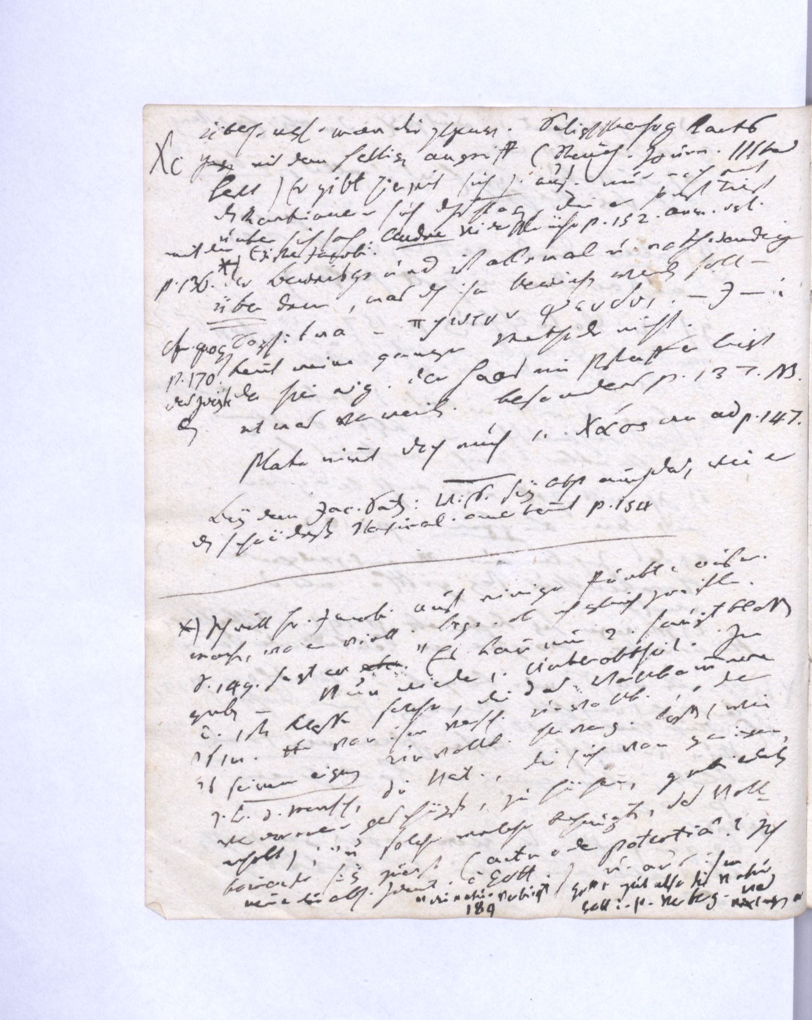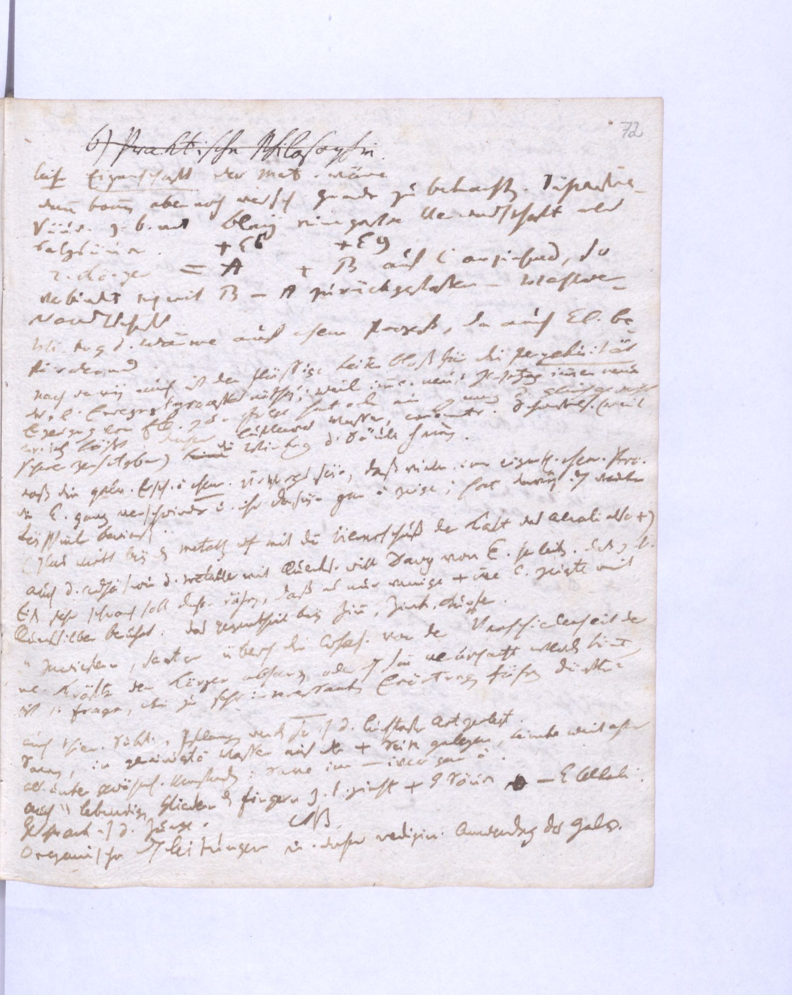 Erste Potenz: Leib und Geist, so daß jener das Dominirende, dieser das potentielle. Leib = empirische Wissensch˖[aft] – Geist = Mathematik (ohne reelle, essentielle Bedeutung.