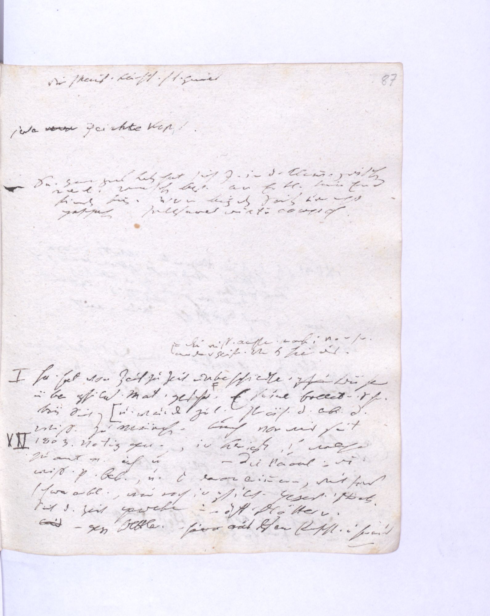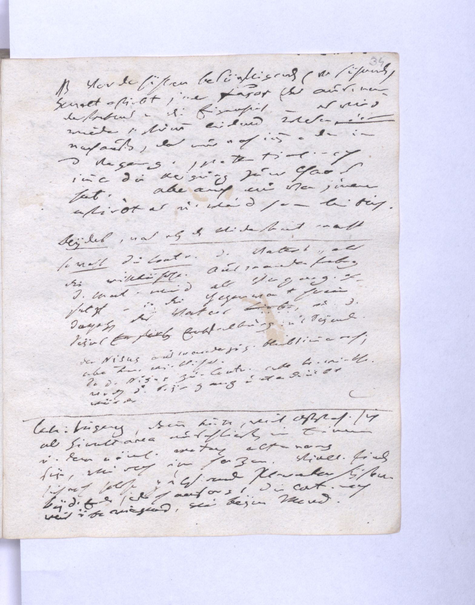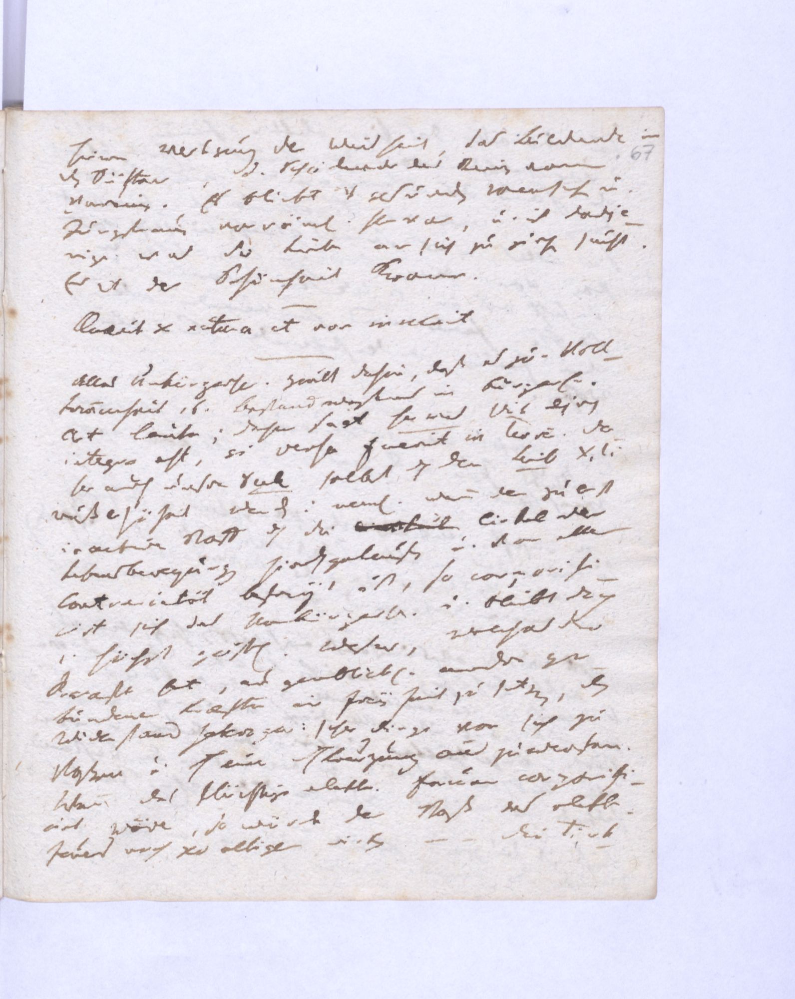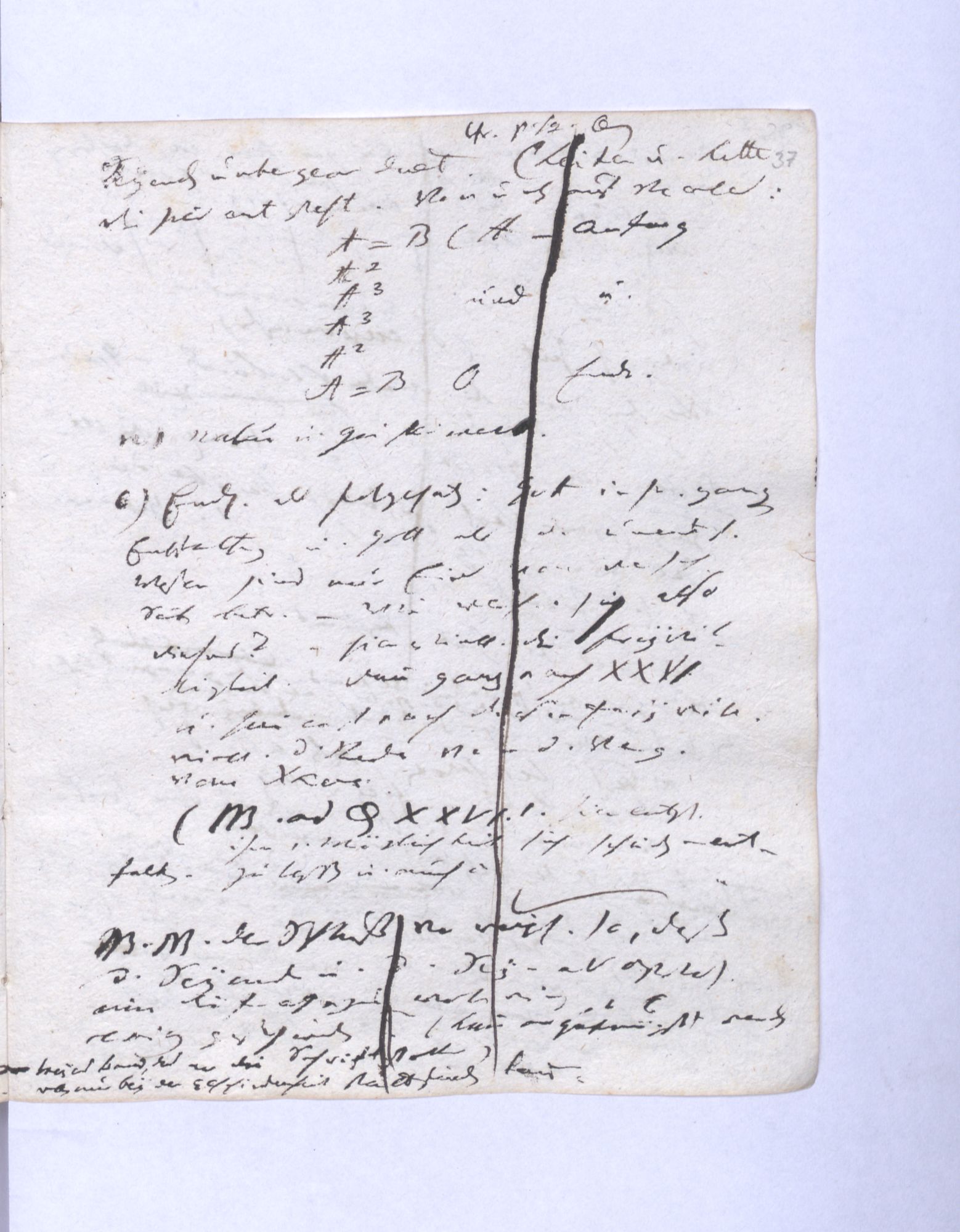 Erste Potenz: Leib und Geist, so daß jener das Dominirende, dieser das potentielle. Leib = empirische Wissensch˖[aft] – Geist = Mathematik (ohne reelle, essentielle Bedeutung.