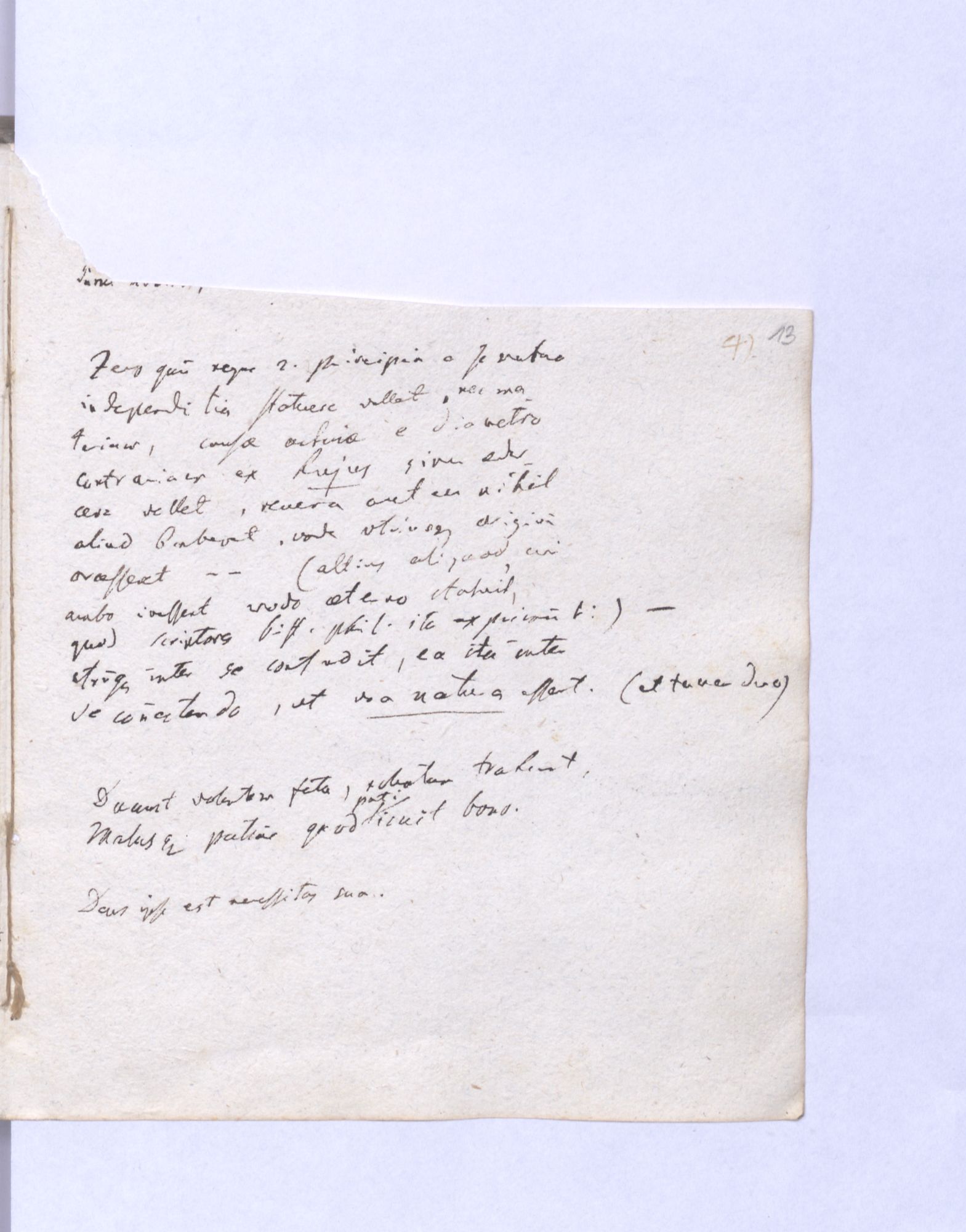 40. Daß auch Kinder sterben ist nothwendig, damit im Himmel ein Beyspiel sey des auf reine Unschuld geimpften Guten, ohne vorher gehende Einwurzelung des Bösen und ob es gleich scheinen kann, daß nur das bis zu einem gewissen Punkt erstarkte Böse auch das vorher Gute tragen kann; so ist doch auf der a˖[ndern] Seite zu bedenken, daß durch Schuld der Natur auch in ihnen das Böse activirt ist.