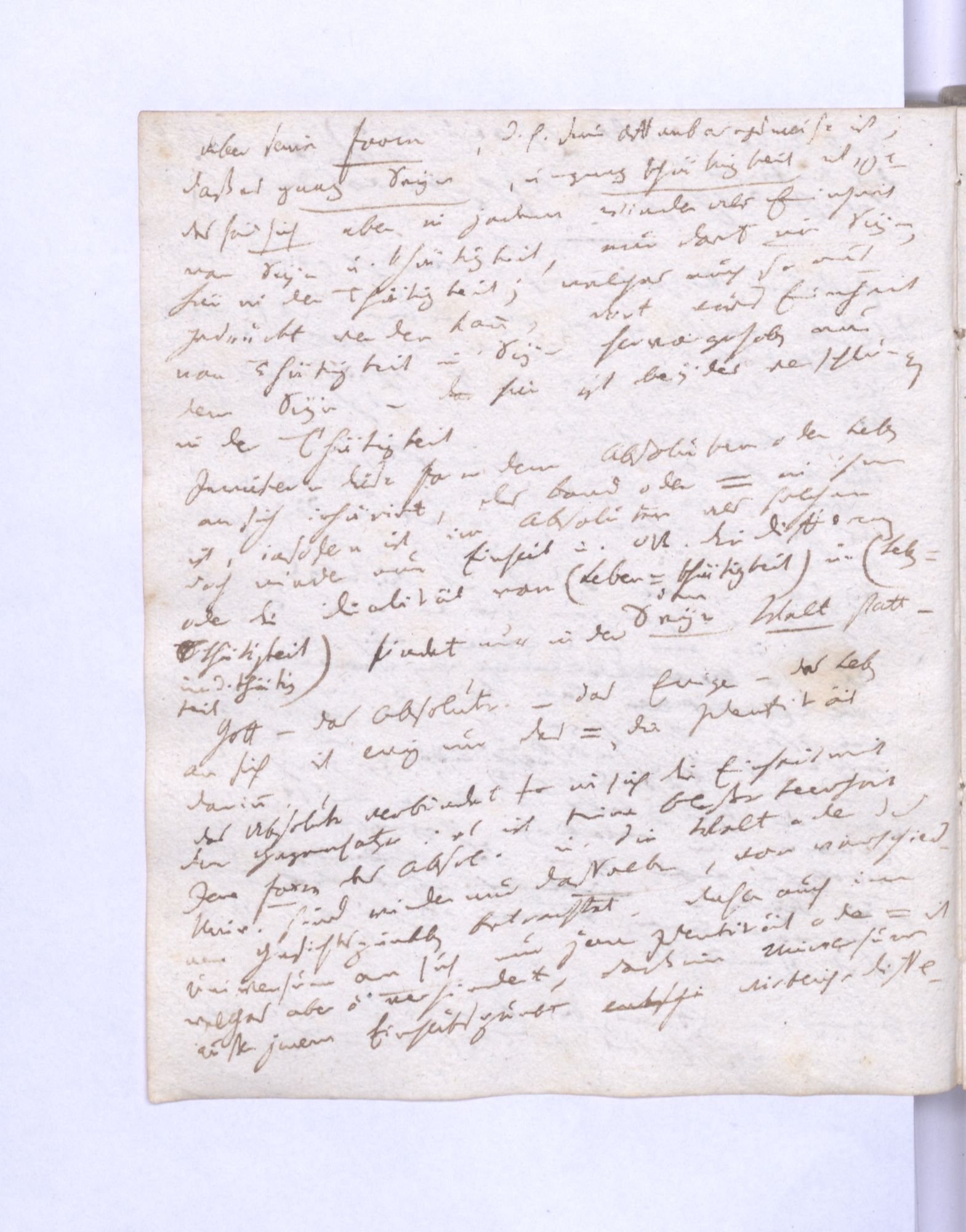 Inwiefern diese Form dem Absoluten oder Leben an sich inhärirt, das Band oder ═ in ihm ist, insofern ist im Absoluten als solchen doch wieder nur Einheit und NB. Die Differenz oder die Dualität von (Leben = Thätigkeit im Seyn) und (Leben = Thätigkeit in der Thätigkeit) findet nur in der Welt statt –