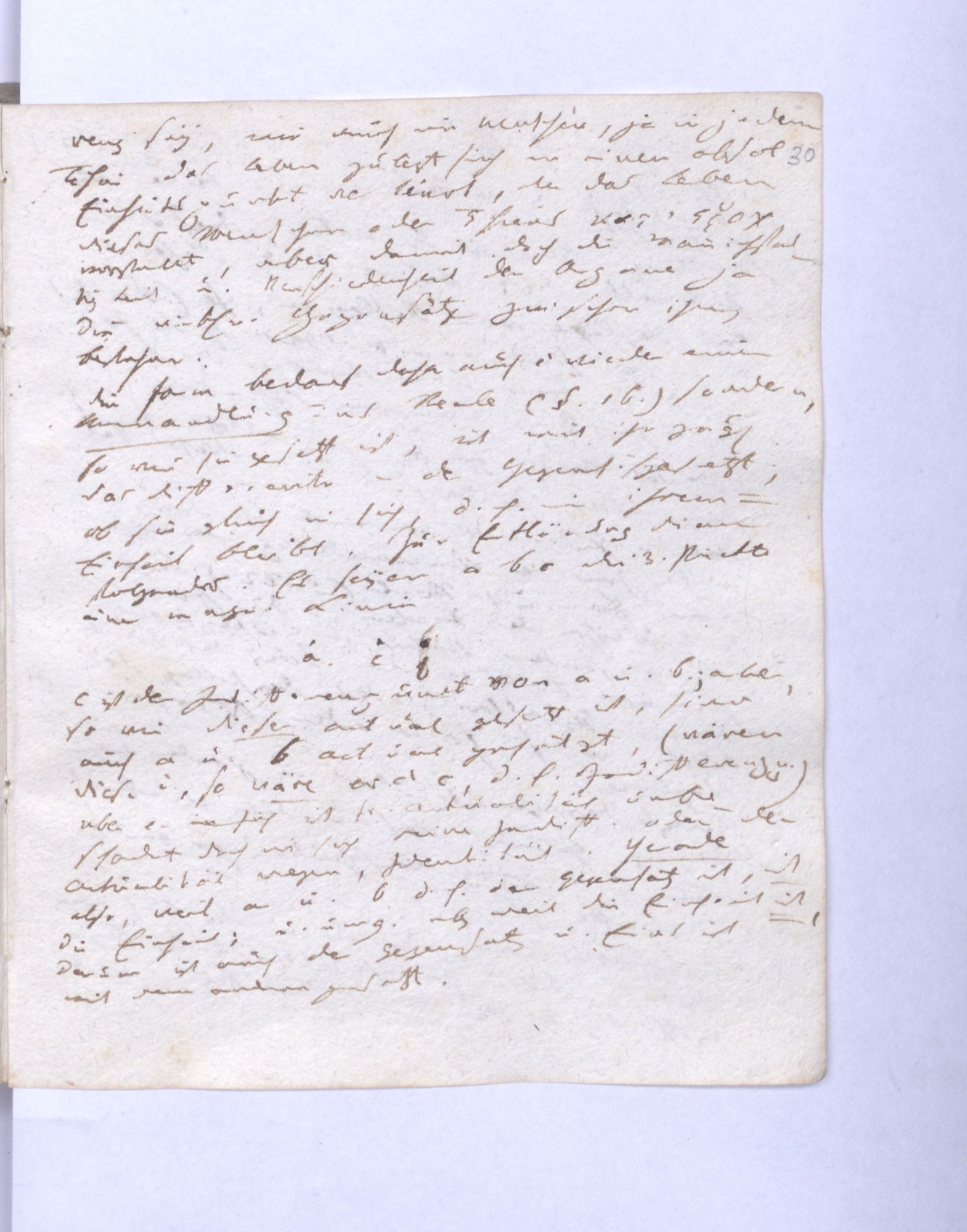Die Form bedarf daher auch nicht wieder einer Umwandlung ins Reale (§.16.) sondern, so wie sie gesetzt ist, ist mit ihr zugleich das Differente – der Gegens˖[atz] gesetzt, ob sie gleich in sich, d.h. in ihrem ═ Einheit bleibt. Zur Erklärung diene folgendes. Es seyen a b c die drey Puncte einer wagr˖[echten] Linie.