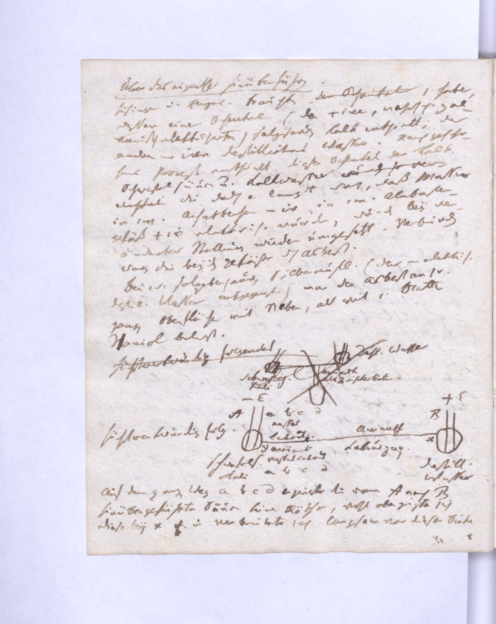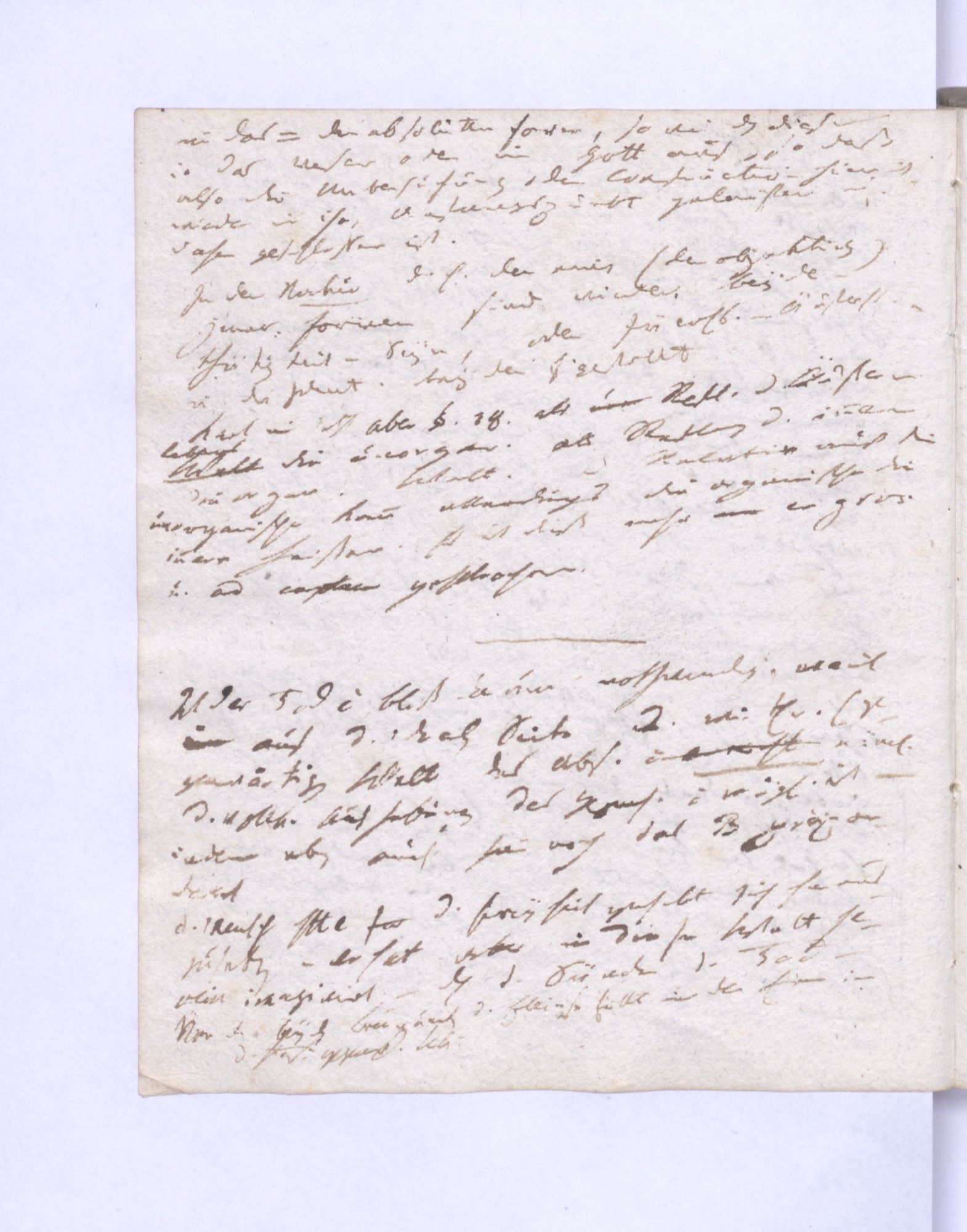 Das Absolute verbindet so in sich die Einheit mit dem Gegensatz: es ist keine bloße Leerheit. Jene Form des Absol˖[uten] und die Welt oder das Univ˖[ersum] sind wieder nur dasselbe, von verschiednen Gesichtspunkten betrachtet. Daher auch im Universum an sich nur jene Identität oder ═ ist welches aber nicht verhindert, daß im Universum außer jenem Einheitspunkt wirkliche Differenz sey, wie auch im Menschen, ja in jedem Thier das Leben zuletzt sich in einen absol˖[uten] Einheitspunkt verliert, der das Leben dieses Menschen oder Thiers κατ’ ἐξοχήν vorstellt, aber damit doch die Mannichfaltigkeit und Verschiedenheit der Organe ja die wirklichen Gegensätze zwischen ihnen bestehen.