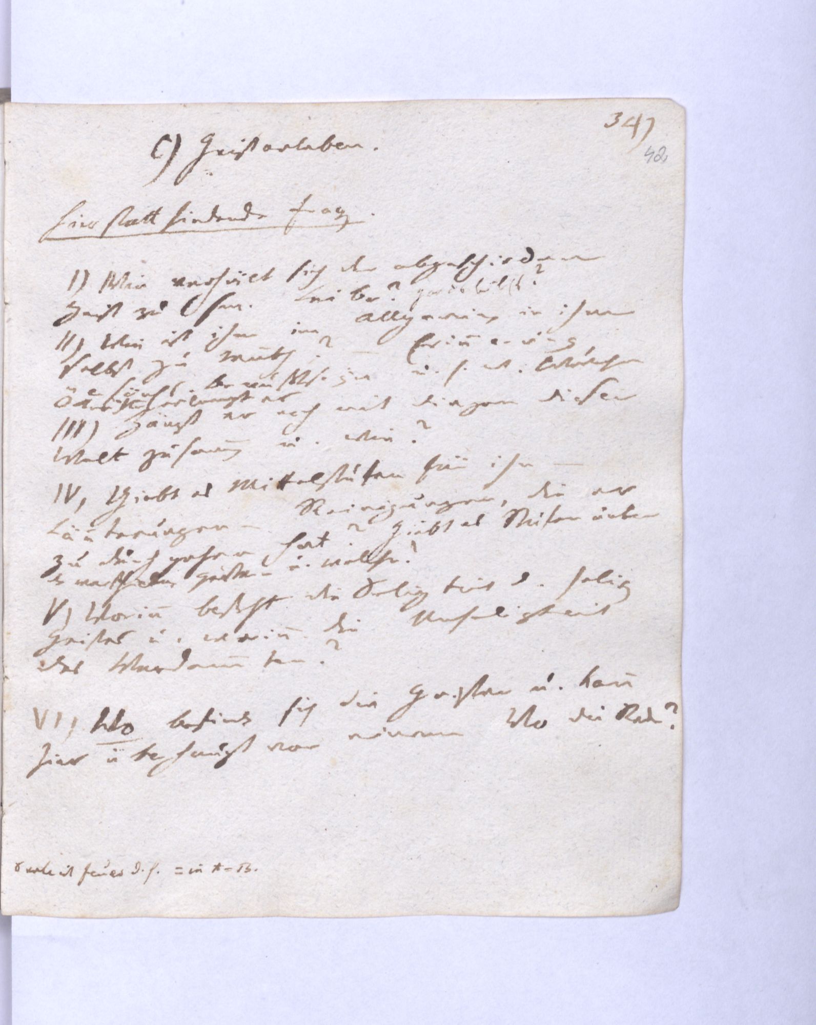 49. Zwischen Himmel und Hölle ist ein mittlerer Zustand welchen Sw˖[edenborg] die Geisterwelt nennt. Dahin kommt nach ihm jeder Mensch nach dem Tode zuerst.