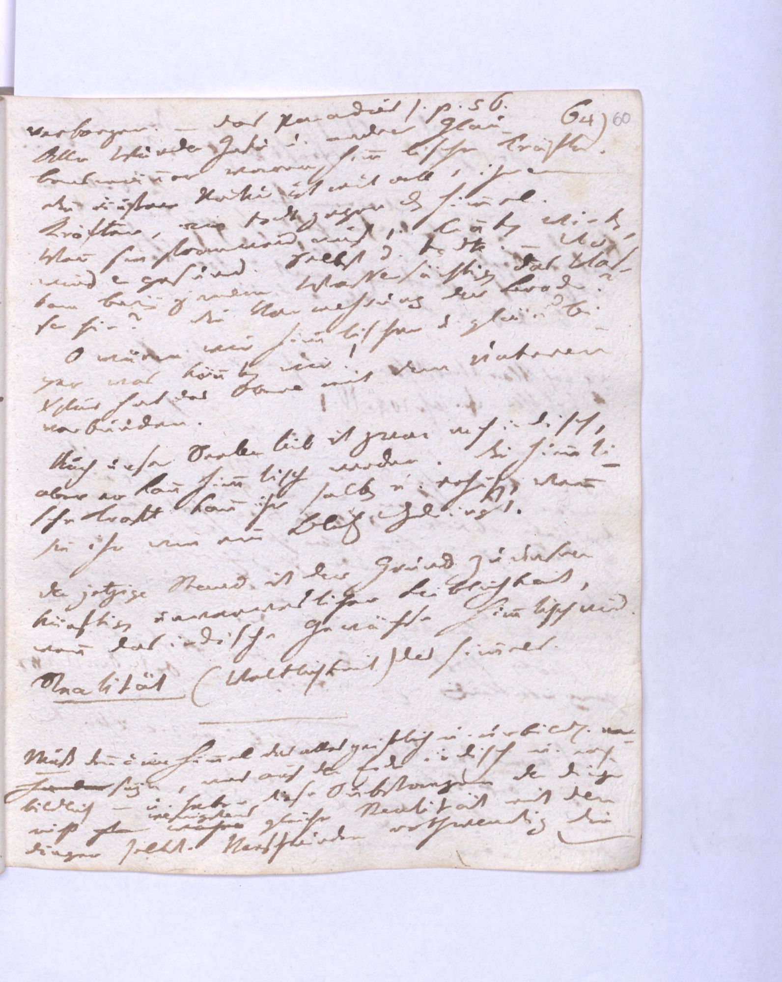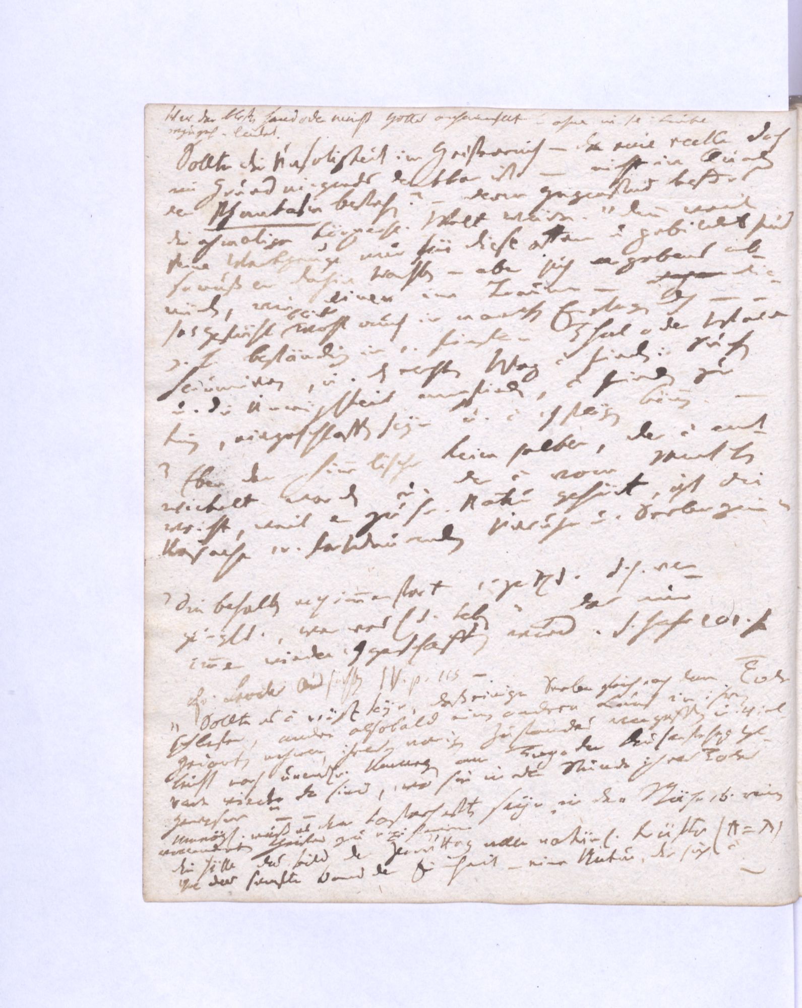 »Es ist doch sonderbar, daß der Mensch nur gleichsam einen Augenblick in dieser irdischen Welt zu seyn bestimmt ist, denn was sind 50–100 Jahre geg˖[en] Ewigkeiten? Wiewohl auch die Geisterwelt noch nicht unser Ziel ist, die wir einer Auferstehung warten.«