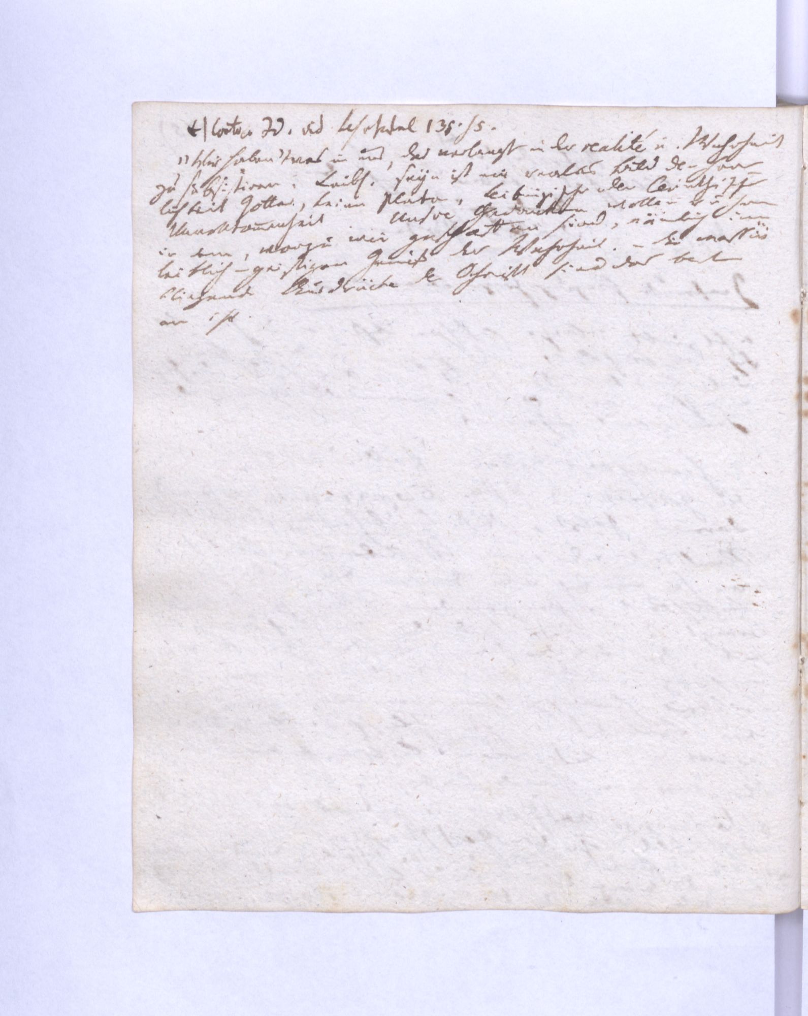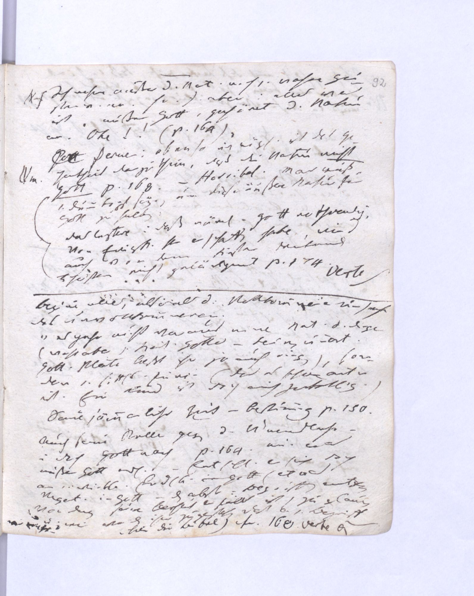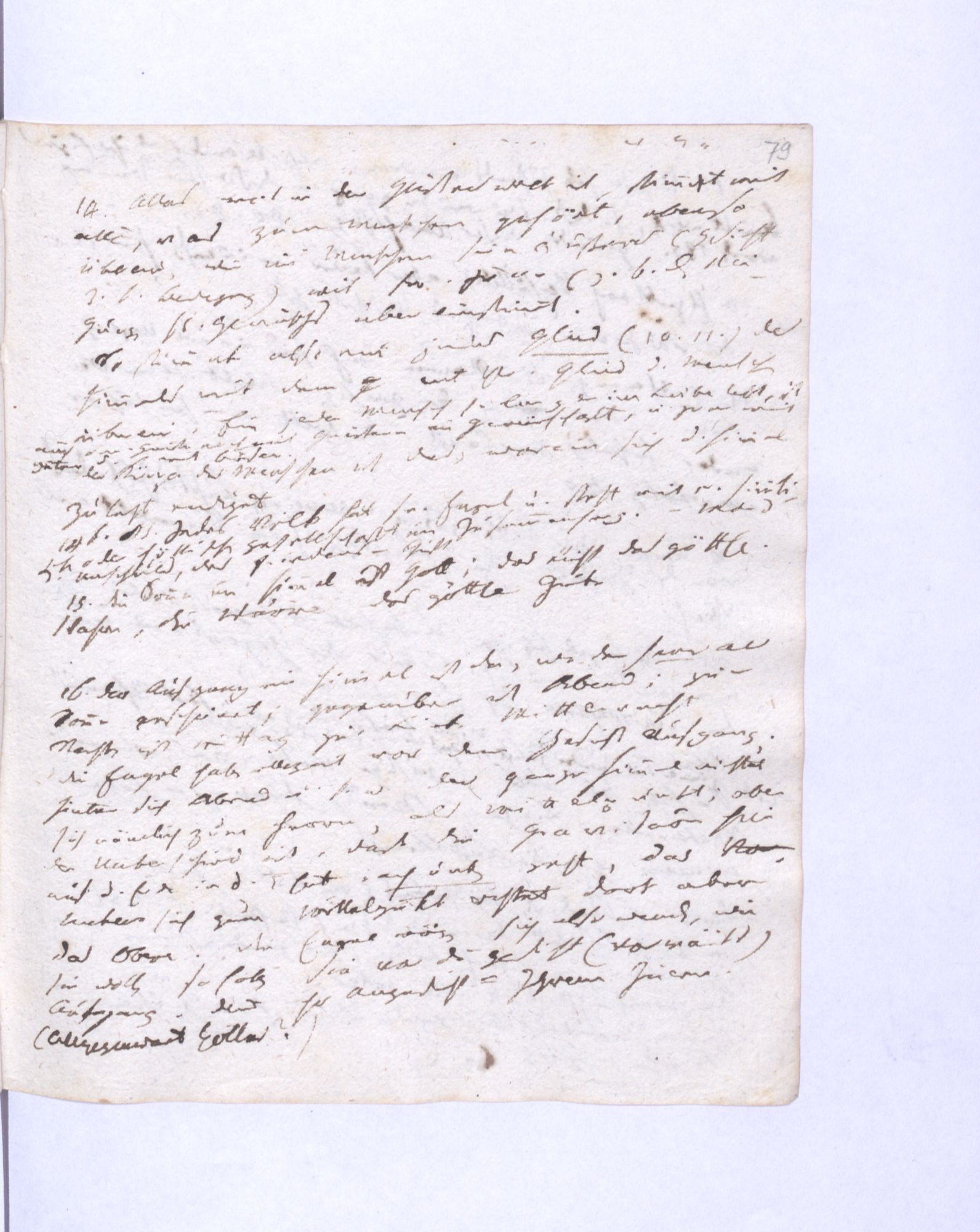 78. Ein beständiger Einfluß des Himmels oder des Guten ist nothwendig anzun˖[ehmen], weil nachdem einmal das Böse erregt ist, ohne diese Gegenwirkung des Guten, das den Übersprung des Bösen beständig zurückhält, bald alles untergehen müßte.
