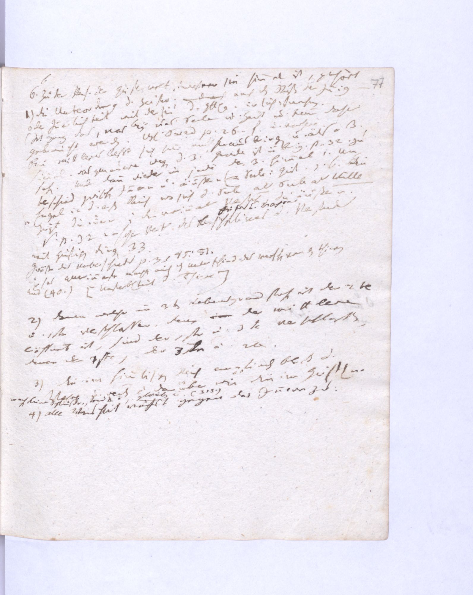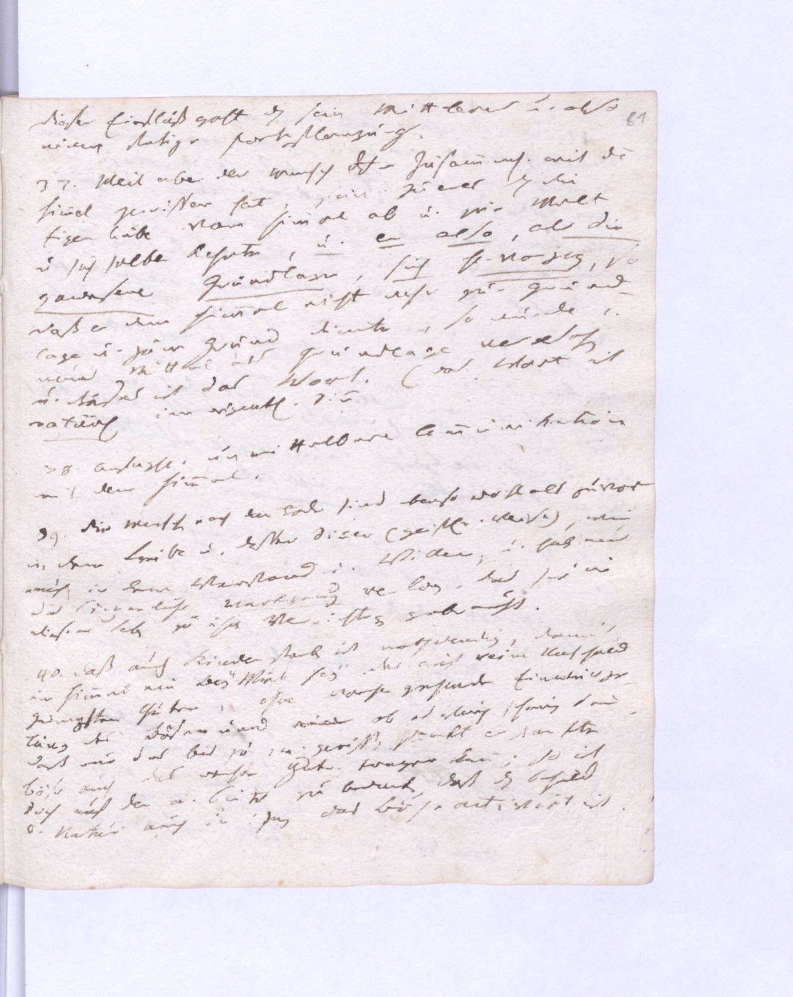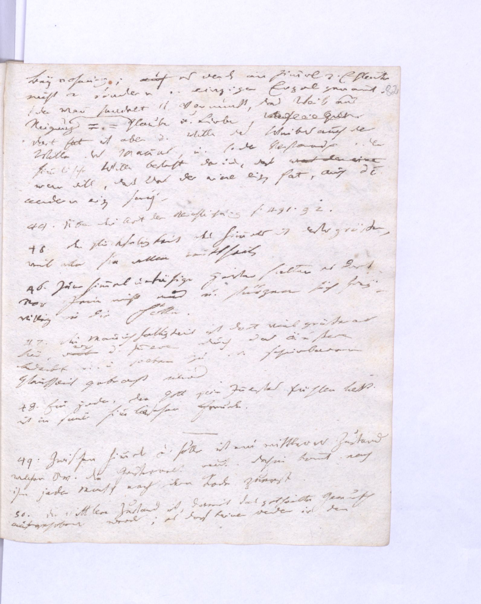 77. Ein Gleichgew˖[icht] zwischen dem wirkenden Guten und dem entgegenwirkenden Bösen findet bey den Guten statt; aber das Gleichgewicht zwischen dem wirkenden Bösen und dem entgegenwirkenden Guten bey den Bösen.