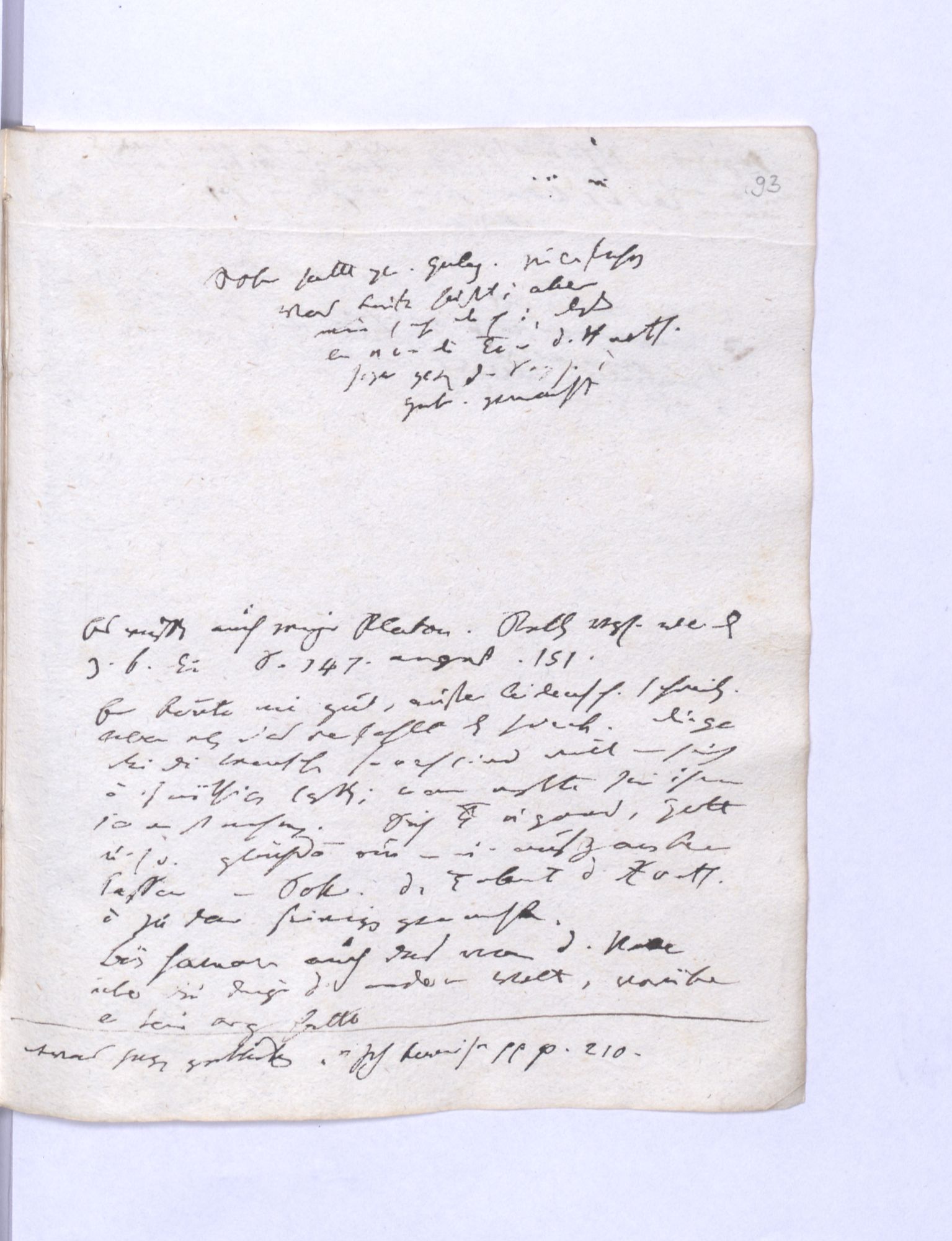 Allg˖[emeine] Entw˖[icklung] Ich hörte in früher Jug˖[end] eine Rede, die ich nicht verstanden und wovon auch das lezte mir fehlt. Über die Natur nämlich und warum alles erst leiblich seyn müßte an sich