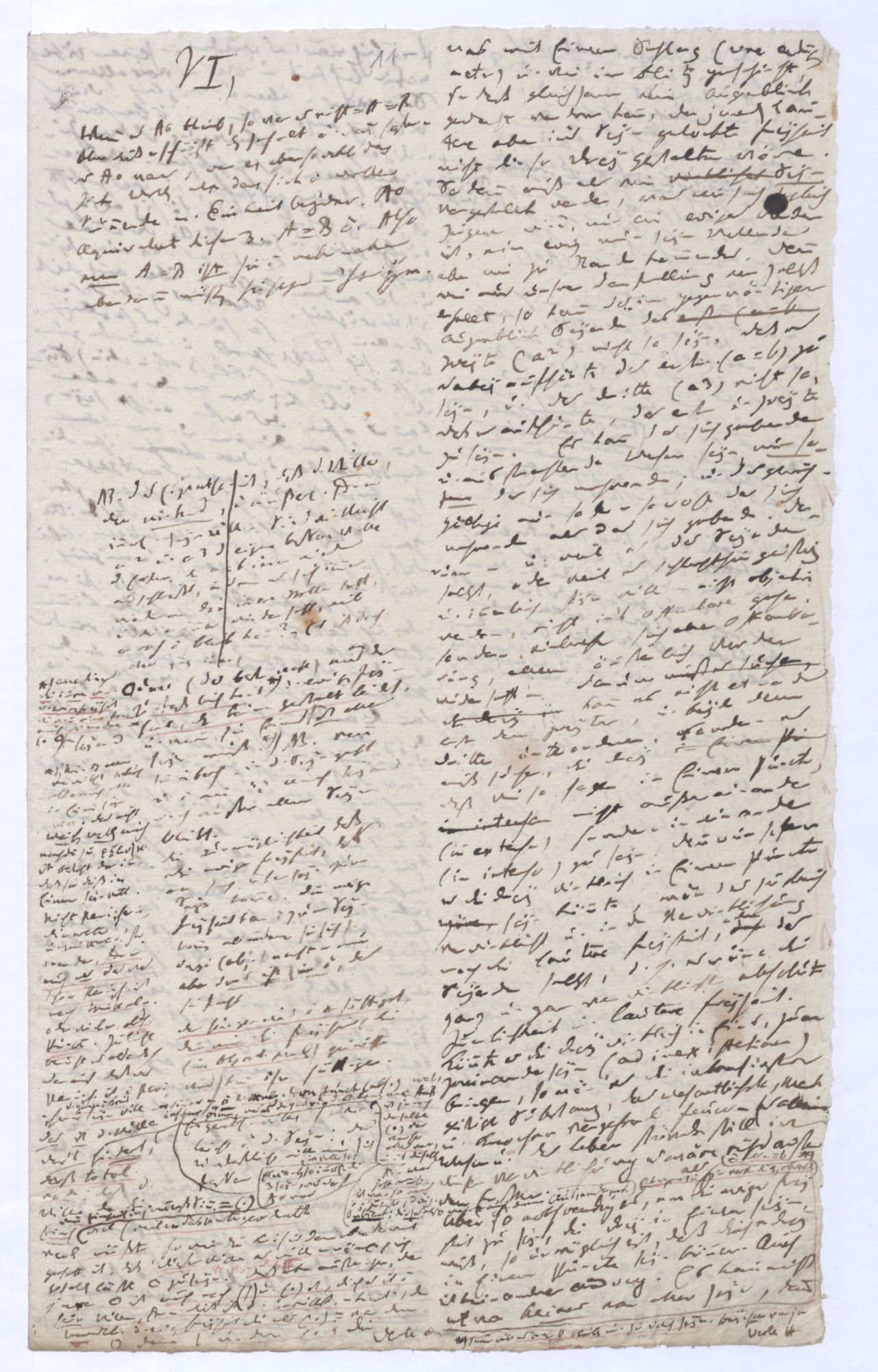 c. Was ist denn diese Begierde, die in ihm oder die es s˖[elbst] und die doch auch nicht es s˖[elbst] ist – diese Zweyheit*) – ℟ an sich Eins – nur durch einen bösen Zauber getrennt – Es ist auch keines mehr das Ganze oder Rechte so wie es zur That kommt. s. IV, 2. tot.