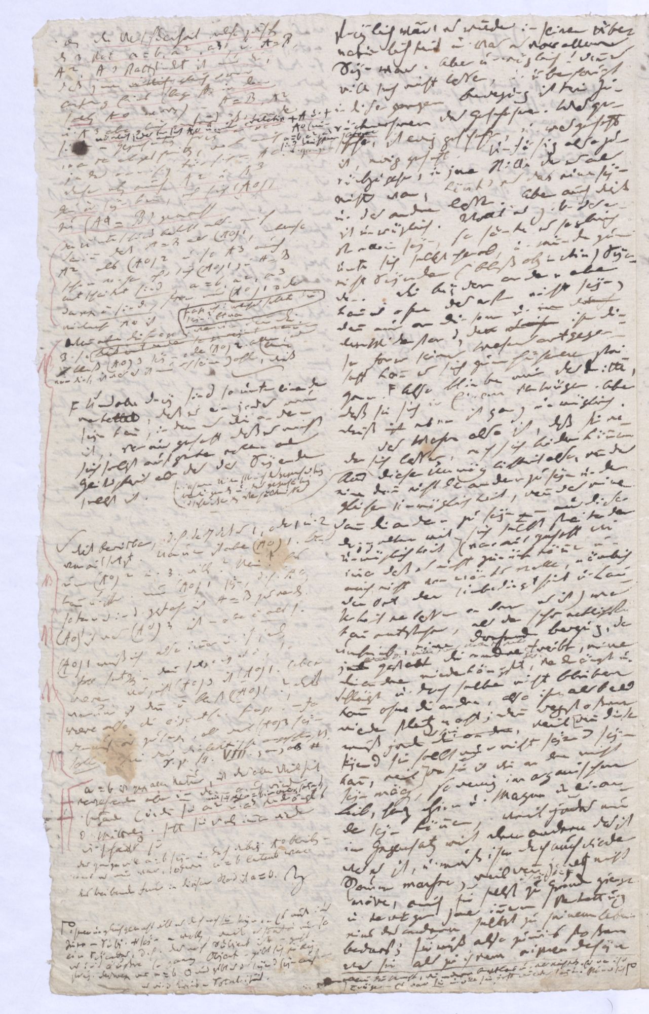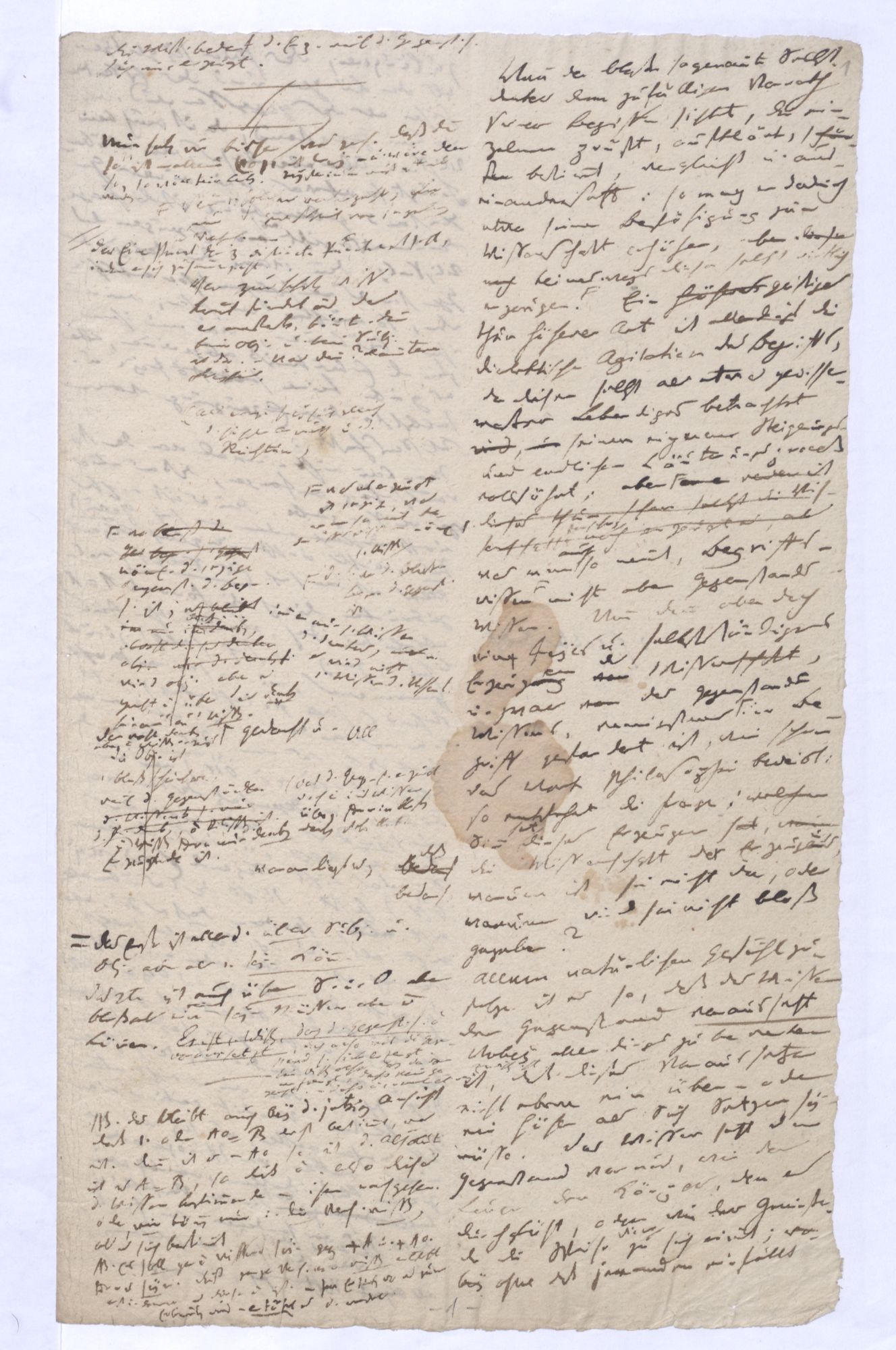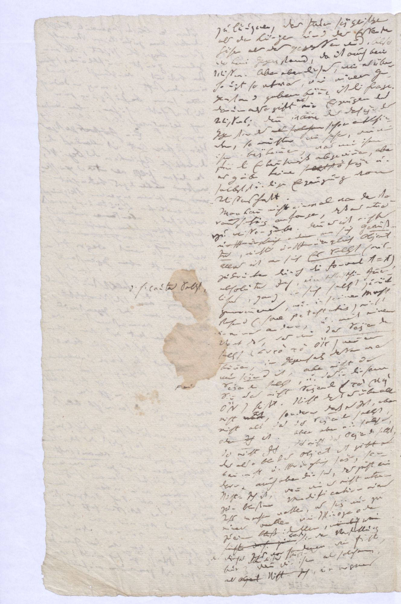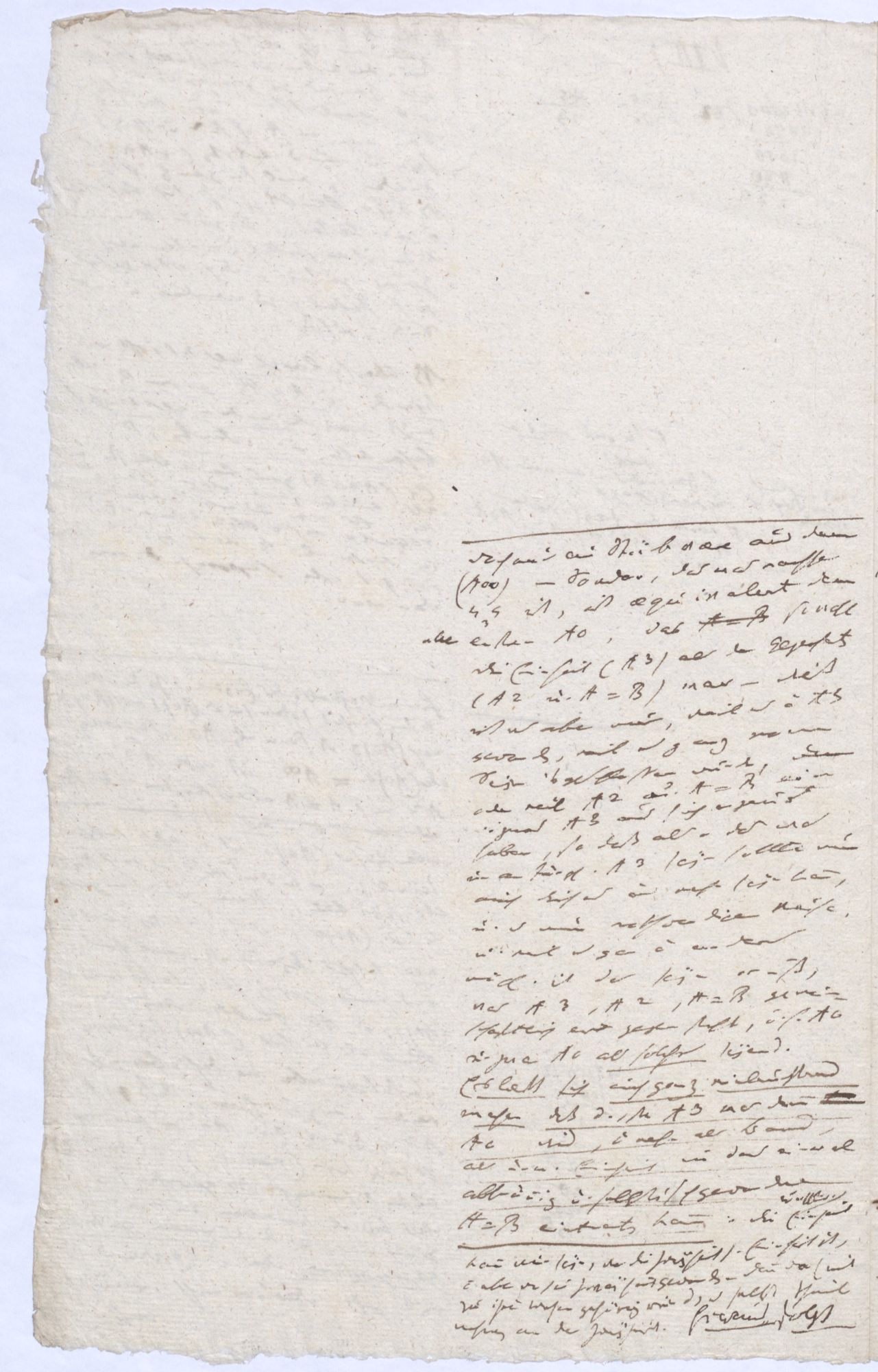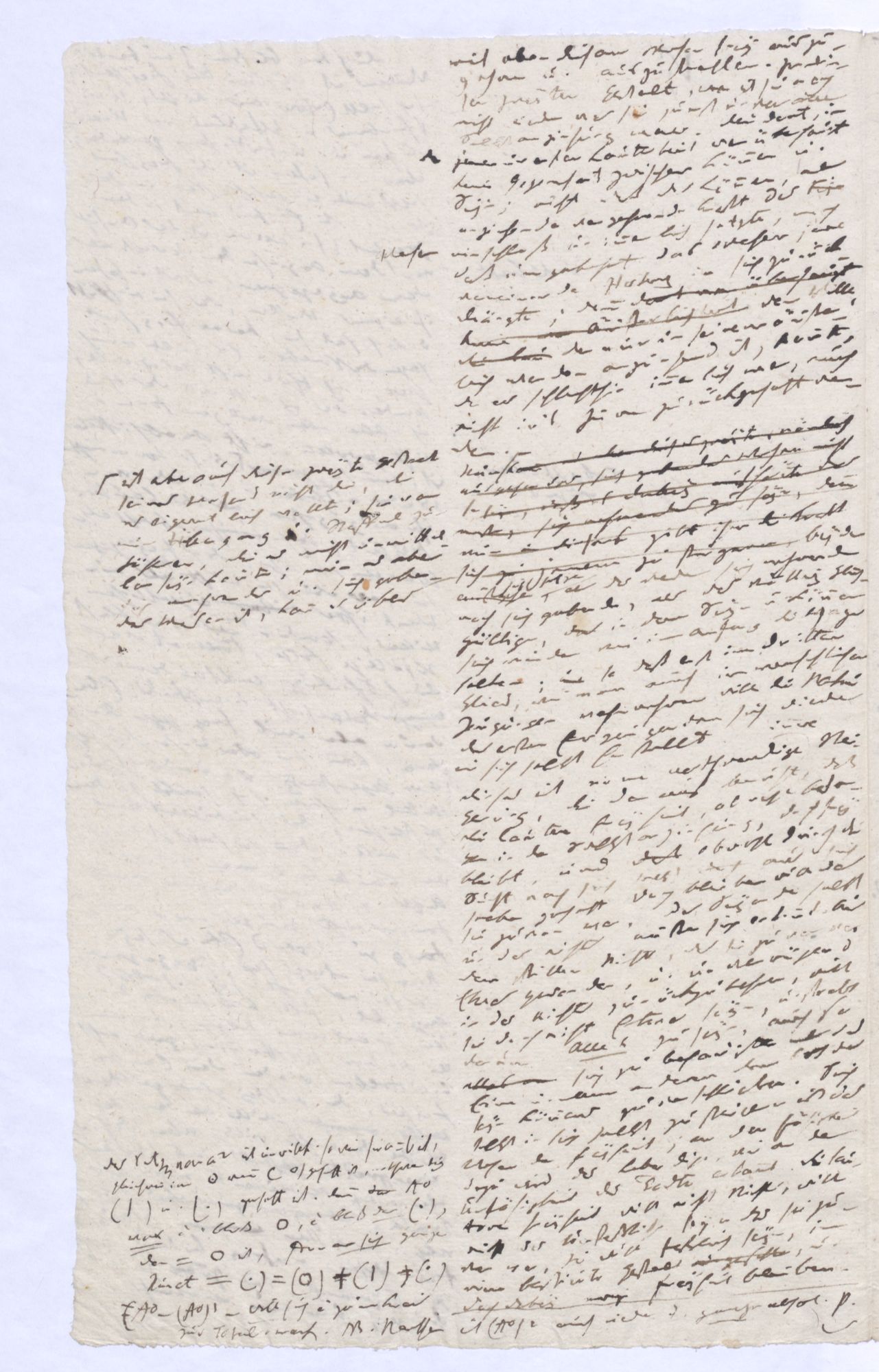 Es läßt sich auch ganz einleuchtend machen daß das erste A3 was dann A0 wird, nicht mehr als Band, als unm˖[ittelbare] Einheit in das einmal abhängig und selbstisch gewordne A=B eintreten kann und die urspr˖[üngliche] Einheit kann nur seyn, wo die Freyheit s˖[elbst] Einheit ist, nicht aber wo sie Zweyheit geworden – denn da (