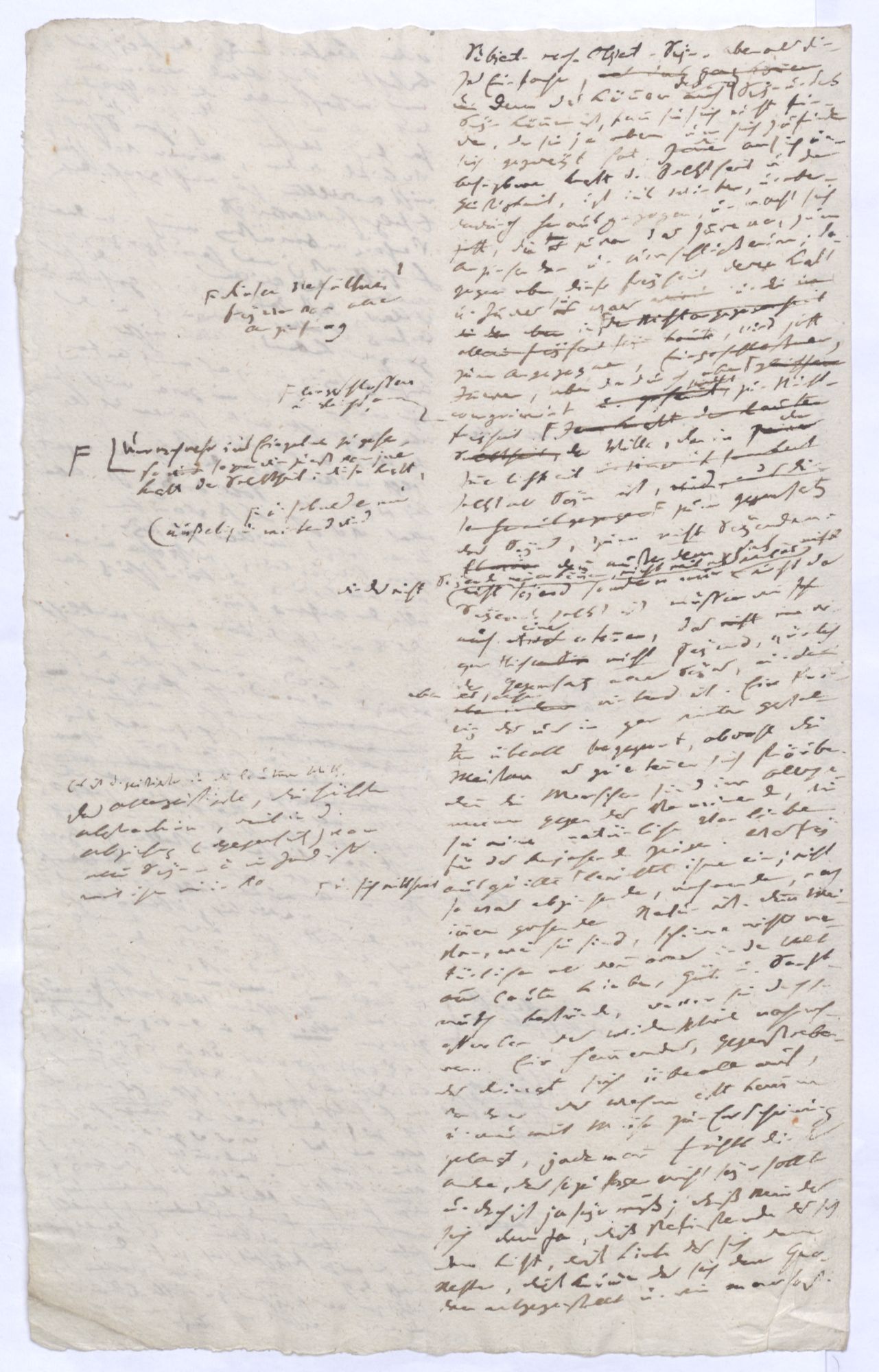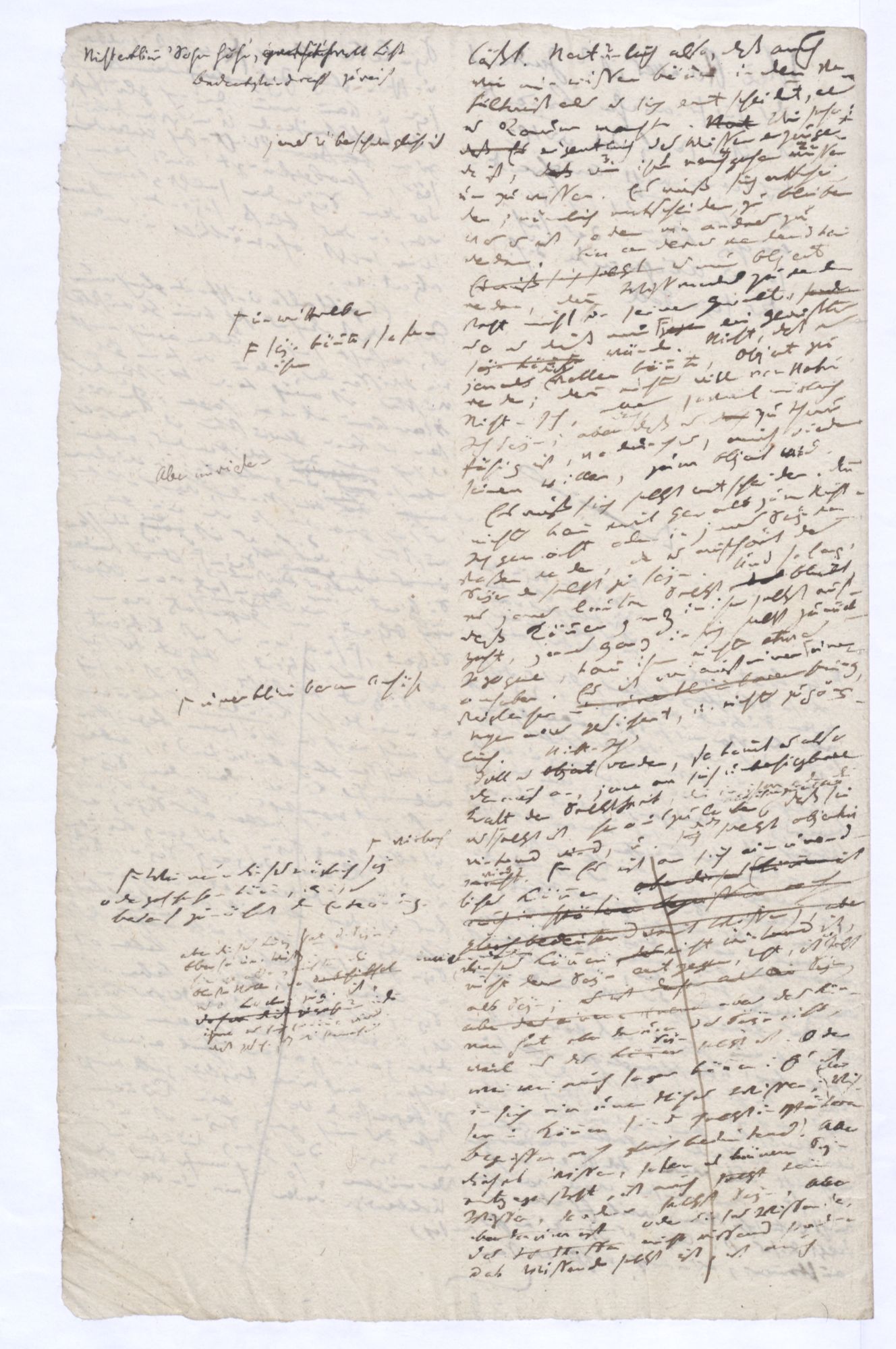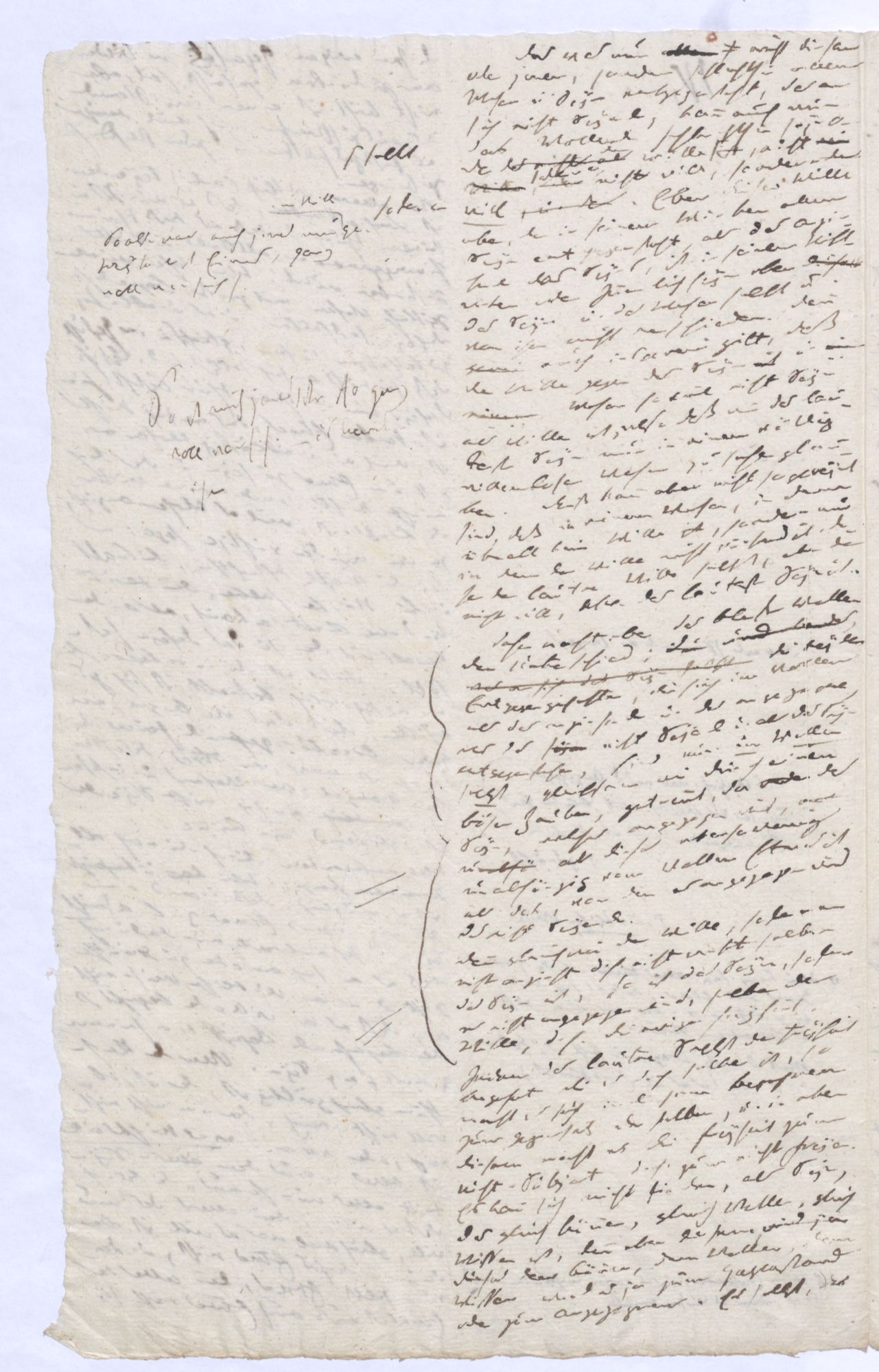 Also wohl objectiv – daß das wahre Wissen überhaupt nicht exist˖[irt] – erst zu werden hat – ja vielleicht der Weltproc˖[eß] s˖[elbst] nur eine Erz˖[eugung] dieses Wissens ist, wovon wir s˖[elbst] ein Theil.