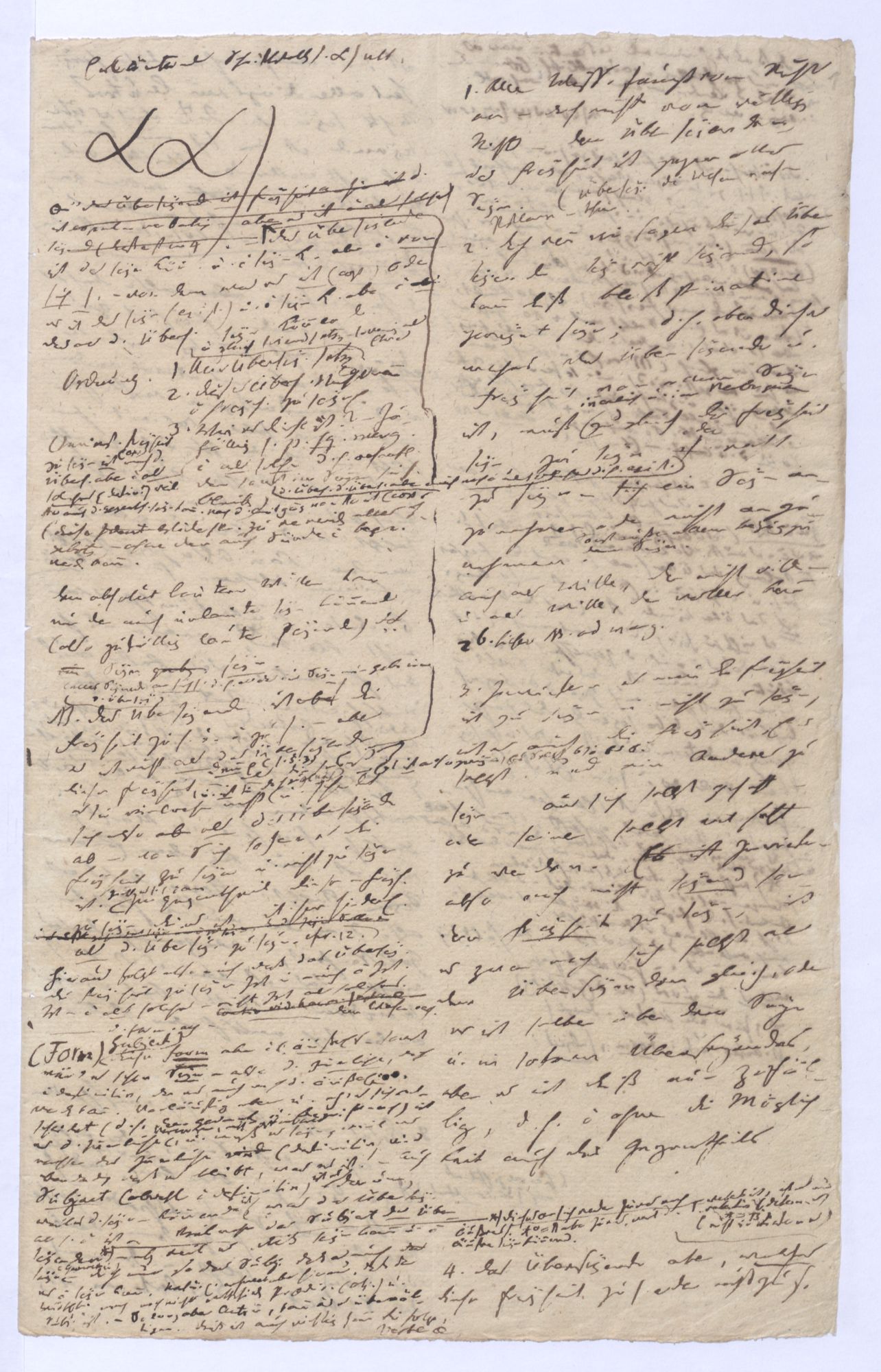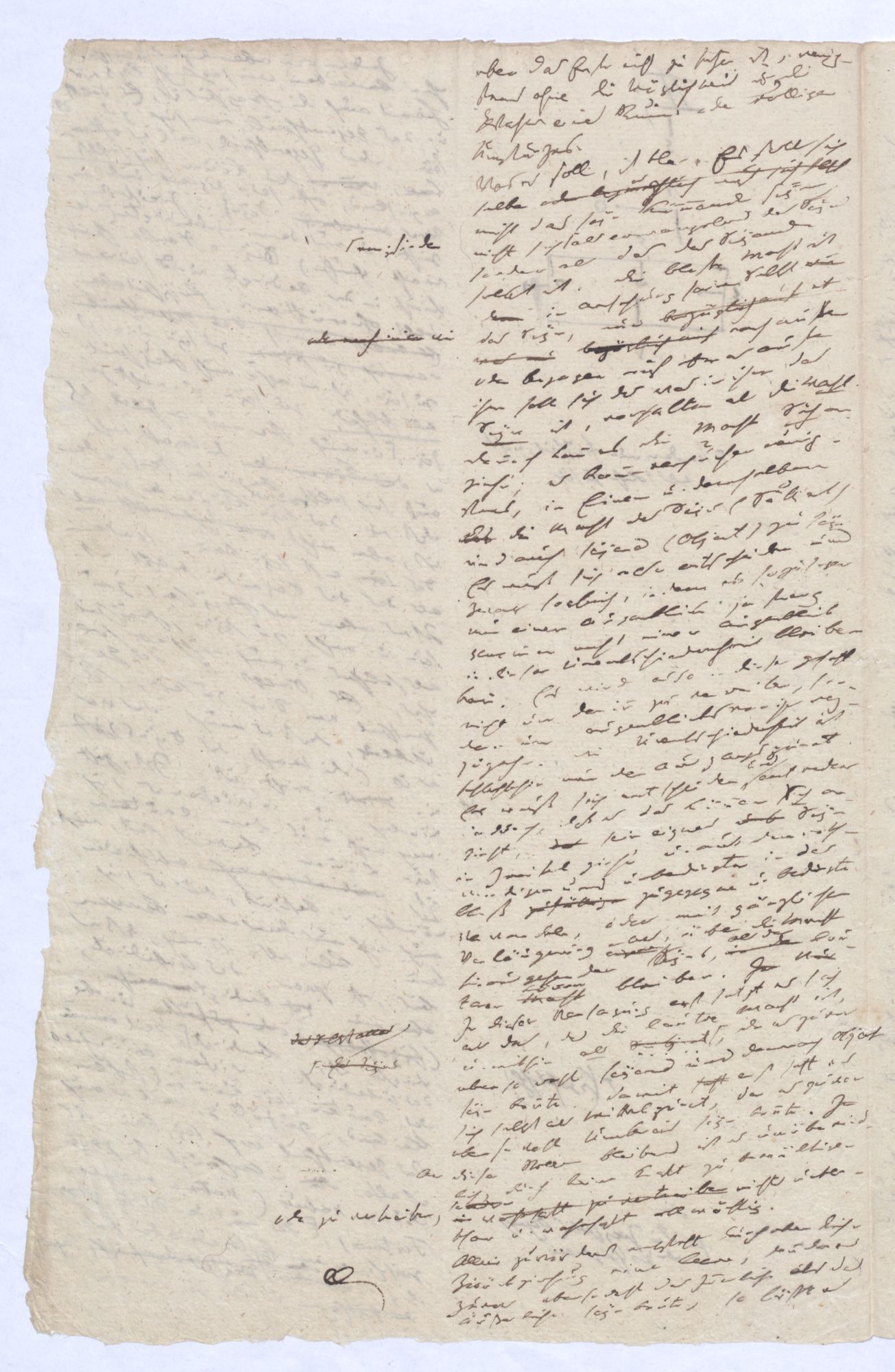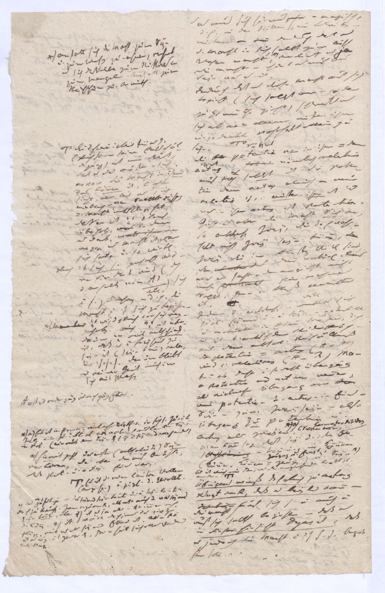 Gewöhnliche Menschen wenn sie hören, daß Etwas vor und außer allem Seyn gedacht werden soll, fragen, was denn vor und außer allem Seyn zu denken sey, und antworten sich selbst das Nichts, worunter sie das ganz und gar Unseyende verstehen. Ja wohl ist es ein Nichts aber wie die lautere Freyheit ein Nichts ist, wie der Wille, nicht der schon wirklich will, sondern in völliger Gleichgültigkeit (Indifferenz) ist. Ein lauteres Wollen ist also jene Macht des Seyns; aber ein sich selbst unfühlbares, das nicht sich selbst hat, seiner selbst völlig frey und ledig ist, sich nicht auf sich selbst zurück bezieht doch sich beziehen kann. Nun soll es sich nicht auf sich selbst beziehen, es soll das lautere Selbst seyn, aber nicht gegen sich selbst, nicht so daß es zugleich der Vorwurf von sich selbst ist, das reine lautere Wollen aber nicht zugleich das Gewollte, wodurch es sich selbst in leidenden Zustand und in Widerspruch mit sich versetzen würde.