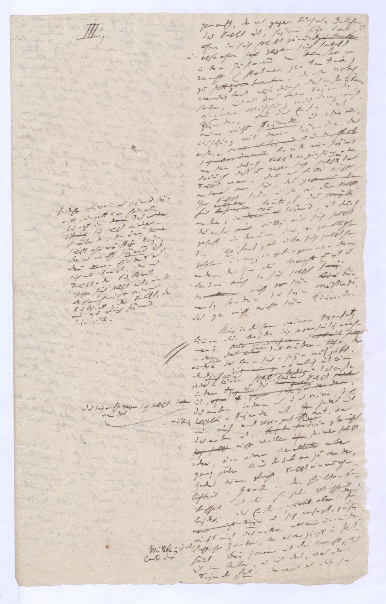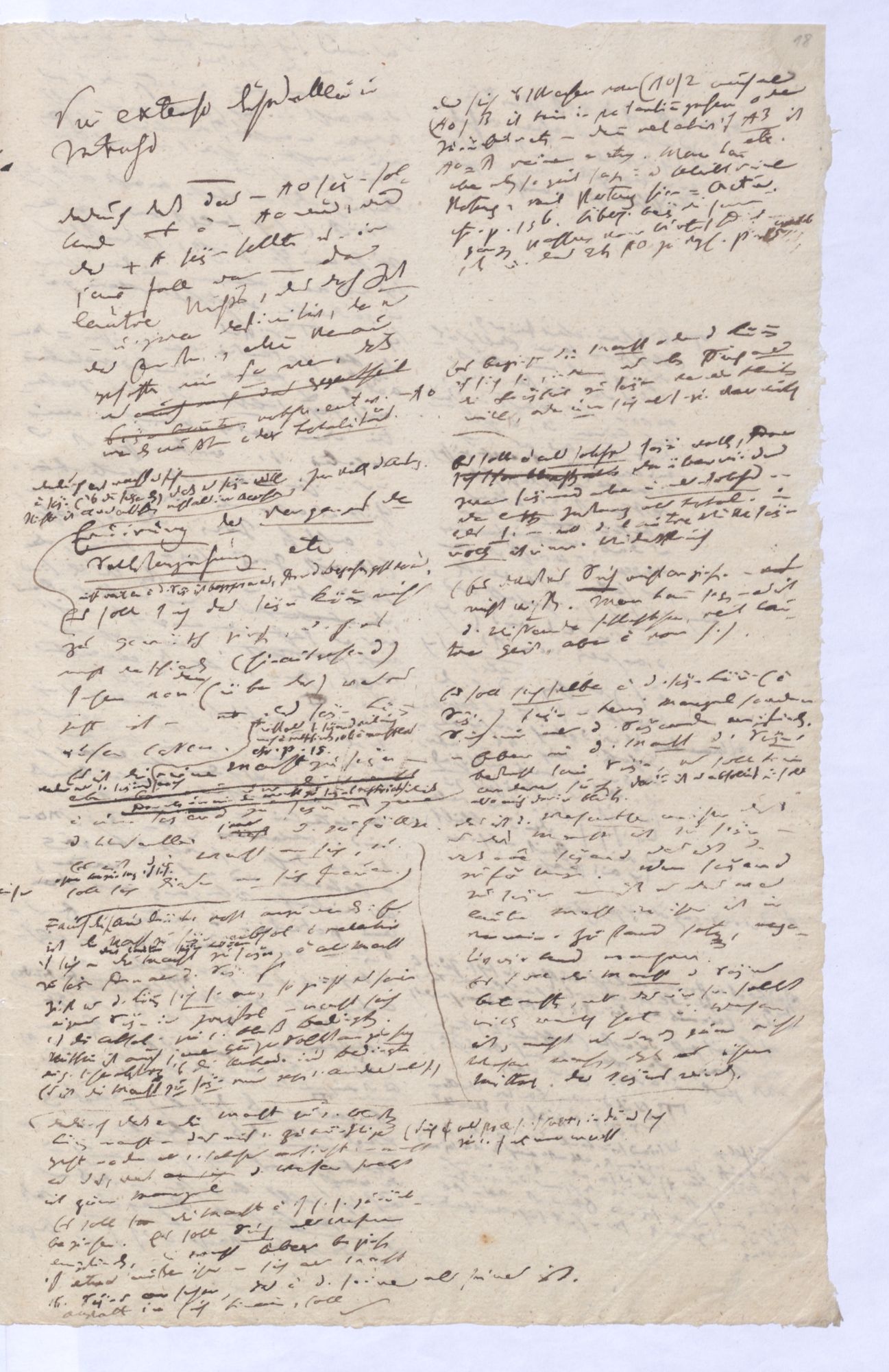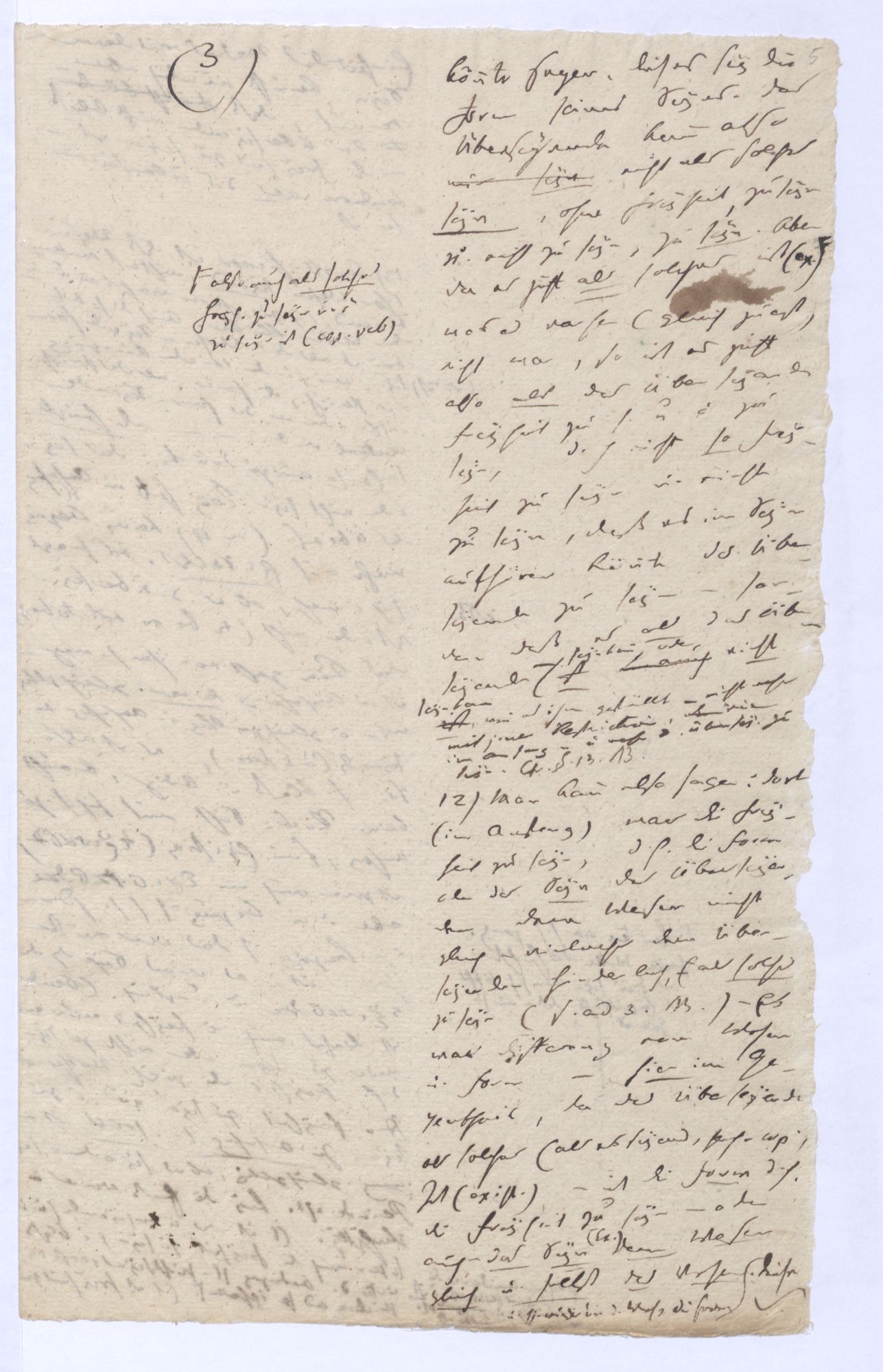 Gewöhnliche Menschen wenn sie hören, daß Etwas vor und außer allem Seyn gedacht werden soll, fragen, was denn vor und außer allem Seyn zu denken sey, und antworten sich selbst das Nichts, worunter sie das ganz und gar Unseyende verstehen. Ja wohl ist es ein Nichts aber wie die lautere Freyheit ein Nichts ist, wie der Wille, nicht der schon wirklich will, sondern in völliger Gleichgültigkeit (Indifferenz) ist. Ein lauteres Wollen ist also jene Macht des Seyns; aber ein sich selbst unfühlbares, das nicht sich selbst hat, seiner selbst völlig frey und ledig ist, sich nicht auf sich selbst zurück bezieht doch sich beziehen kann. Nun soll es sich nicht auf sich selbst beziehen, es soll das lautere Selbst seyn, aber nicht gegen sich selbst, nicht so daß es zugleich der Vorwurf von sich selbst ist, das reine lautere Wollen aber nicht zugleich das Gewollte, wodurch es sich selbst in leidenden Zustand und in Widerspruch mit sich versetzen würde.