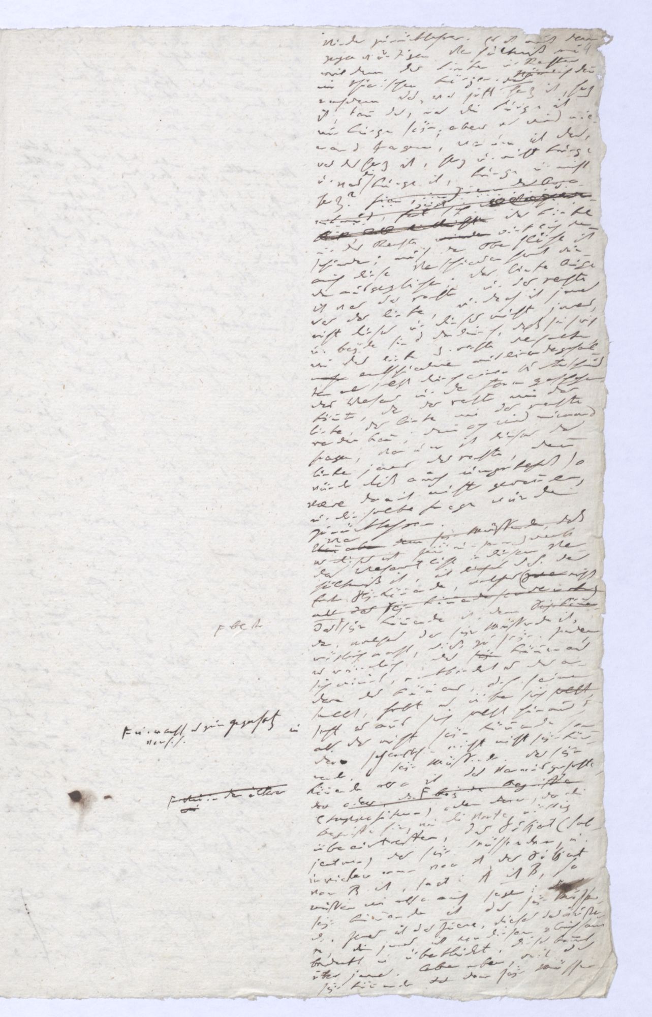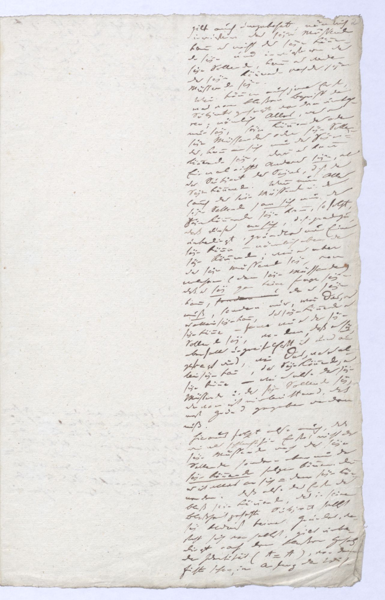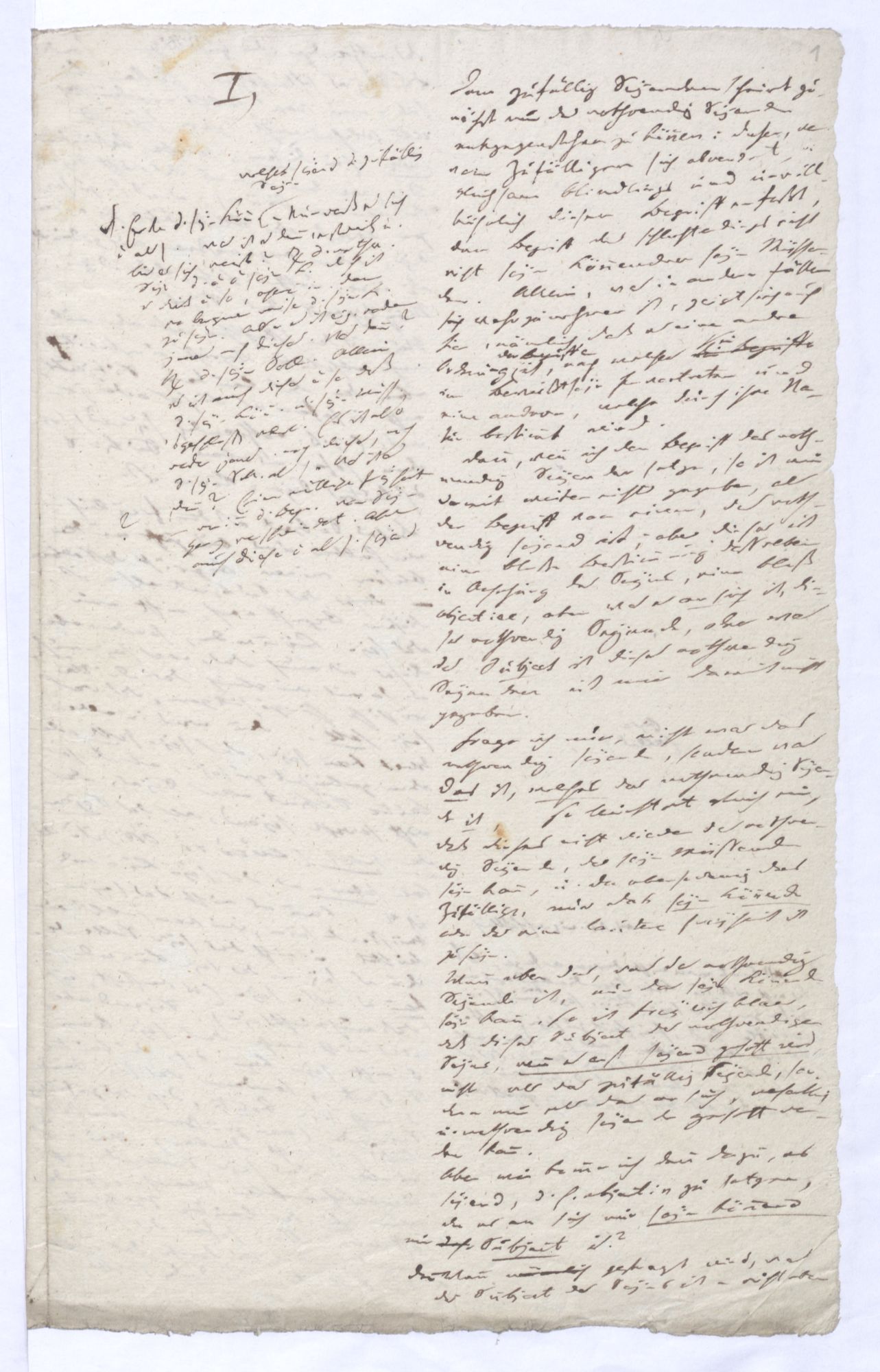 Nun läßt sich auch wohl zum Voraus absehen daß das ### dessen, was das seyn Könnende und dessen was das seyn M˖[üssende] ist ein sehr verschiednes seyn werde. Man könnte daher versucht seyn zu fragen: warum, da jenes doch eben das (dasselbe Subject) ist, was dieses, warum muß jenes das Erste und darum das bloß seyn Könnende seyn, dieses das Zweyte und dadurch das schlechthin Seyende? Allein hievon läßt sich wie leicht einzusehen kein Grund angeben. Nämlich: nachdem das erste ist, so ist freylich Grund daß das zweyte das schlechthin Seyende sey; denn es kann nur dieses seyn, daß aber das Erste das erste, und also das lautre seyn Könnende ist, davon läßt sich kein Grund angeben, hier ist der Ungrund, das ist so weil es so ist, als ein ewig Vorausgesetztes, gleichsam als eine ewige Vergangenheit, denn irgendwo muß der Grund aufhören, nämlich eben bey dem, was der Grund von allem ist. Auch wäre ja damit nichts gewonnen, wenn das, was jetzt das Zweyte ist das Erste, und was das Erste, das Zweyte wäre, sondern es würde nur dieselbe Frage wieder zurückkehren. Es ist mit dem gegenwärtigen Verhältniß wie mit dem des Linken und Rechten im thierischen Körper. Denn nachdem das, was jetzt das Herz ist, Herz ist, kann das, was die Lunge ist nur Lunge seyn; aber es wird niemand fragen, warum ist das, was das Herz ist, Herz und nicht Lunge und was die Lunge ist, Lunge und nicht Herz? Hier, im Innern des Organismus zeigt sich das Linke und das Rechte wirklich verschieden; auf der Oberfläche ist auch diese Verschiedenheit wieder ausgeglichen; das linke Auge ist was das rechte und das rechte was das linke, und doch ist jenes nicht dieses und dieses nicht jenes, und beyde sind dadurch, daß sie sich wie das linke und rechte verhalten, entschiedner auseinandergehalten als selbst durch einen Unterschied des Wesens und der Form geschehen könnte, da das rechte nie das linke, das linke nie das rechte werden kann; dennoch wird niemand fragen, warum ist dieses das linke jenes das rechte, denn würde dieß auch umgekehrt so wäre damit nichts gewonnen, und dieselbe Frage würde zurückkehren.