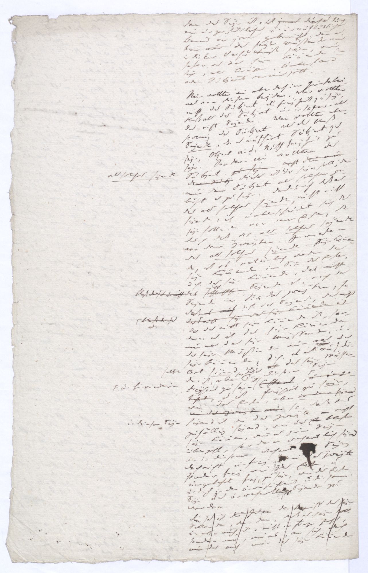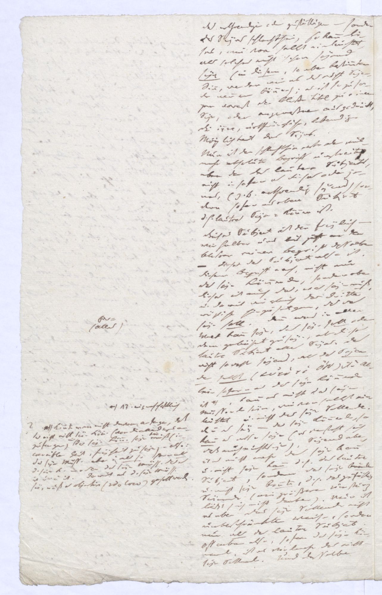Dieses Subject ist denn freylich – wir halten uns bis jetzt an den bloßen reinen Begriff desselben – das Subject also ist, diesem Begriff nach, nicht nur das seyn Könnende, sondern eben dieses ist auch das, was seyn muß, und damit wir gleich den dritten möglichen hinzusetzen, das was seyn soll. Denn was in aller Welt kann seyn, das seyn soll oder dem gebührt zu seyn, als dieses lautre Subject alles Seyns, das nicht sowohl seyend, als das Seyende selbst (αὐτὸ τὸ ὌΝ) ist und allein sofern es das seyn Könnende ist*)*) NB. eigenschaftlich, kann es nicht das Seyn Müssende seyn, wie von selbst einleuchtet und nicht das seyn Sollende. *)) Könnte man nicht davon anfangen, daß das nicht nicht seyn Kön˖[nende] (von dem allerdings anzufangen) nur das seyn Kön˖[nende] seyn kann (incoercibler Geist, Freyheit zu seyn) – also: das seyn Müss[ende]. Aber nicht als s˖[olches] sondern als das seyn K˖[önnende] – oder das seyn Müss˖[ende] das es ist und nicht ist. Damit es das seyn Müss˖[ende] sey, muß es objectiv (secundo loco) gesetzt werden.Denn es sey – das seyn Könnende, so kann es also seyn (es versteht sich daß auch nichtseyn), Seyend aber, ist es nicht mehr das seyn kann und nicht seyn kann d.h. das lautre Subject, sondern das seyn und nicht seyn konnte, d.h. das zufällig Seyende (ein größerer Umsturz läßt sich nicht denken). Nun ist es aber das seyn Sollende nicht unbeschränkter Weise, sondern nur als das lautere Subject. Offenbar also, sofern das seyn Könnende, ist es vielmehr das nicht seyn Sollende. Und dasselbe gilt auch umgekehrt; nämlich inwiefern das seyn Müssende kann es nicht das seyn Könnende seyn und inwiefern das seyn Sollende, kann es weder das seyn Könnende noch das seyn Müssende seyn.