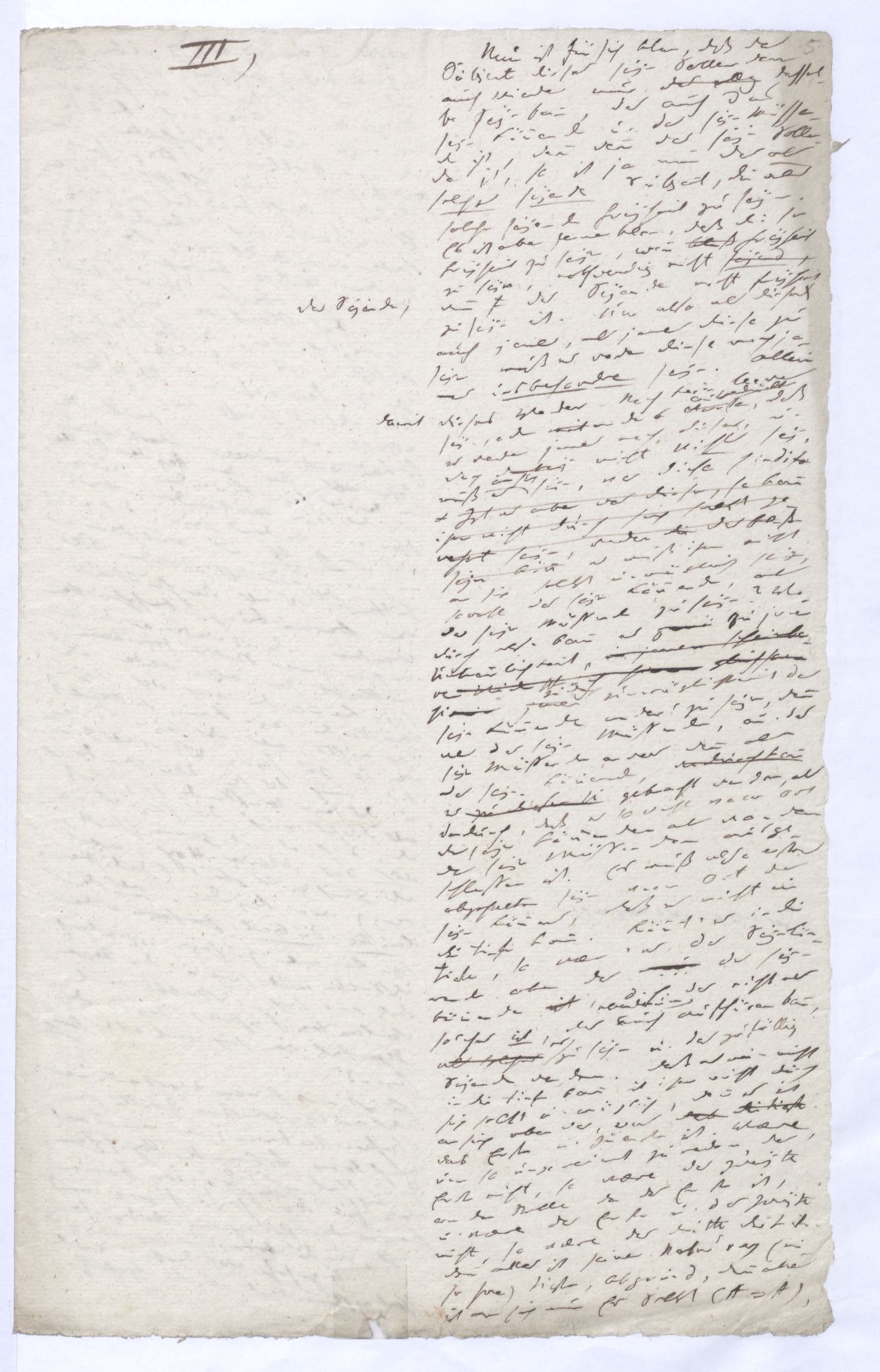Und so geben wir denn im Anfang wohl das seyn Müssende auf, indem wir nur das Seynkönnende d.h. das allgemeine Subject setzen, sofern es das seyn Könnende ist. Allein indem wir so das bloße nackte Seynkönnende oder Subject setzen, machen wir II)ebendadurch möglich, daß das seyn Müssende sey. Denn an sich freylich kann dieses auch nur das Seynkönnende seyn, aber gegen das Subject, das ihm vorgesetzt ist, wird es zum nothwendig Seyenden, weil nichts das nothwendig Seyende seyn kann, als eben das lautre Subject des Seyns, d.h. das seyn Könnende selbst, nicht an sich, aber sofern es objectiv, d.h. seyend gesetzt ist. Denn das seyn Könnende kann als dieses nicht wieder bloß seyn Könnendes seyn, es muß das schlechterdings nicht nicht seyn Könnende das seyn müßende seyn. Nun ist aber das seyn Könnende, das vor allem, schlechthin, gesetzt wird zwar das seyn Könnende, aber nicht als das seyn Könnende. Es ist das seyn Könnende, aber das ganz in sich selbst zurückfallende, es ist’s, aber nicht übergehender Weise oder so daß es sich selbst wieder als solches zurückgestrahlt wird, sondern schlechthin innerlich und irreflexiver Weise; in der Einfalt nicht in der Verdoppelung (reduplicative) es ist das seyn Könnende an sich im eigentlichen Sinn (wie man von einem Menschen sagt, daß er einen Fehler oder eine Untugend an sich hat, die er nicht los werden kann, die er nicht gewahr wird). Ebendarum weil nicht als das seyn Könnende ist es wahrhaft seyn Könnendes, Freyheit zu seyn; denn wär’ es als das seyn Könnende, so wär’ ihm eben dadurch ### seyend zu werden, da es als solches seyend aufhörte das seyn Könnende zu seyn. Um also das Seynkönnende (### ### allgemeine Subject) als das seyn Müssende zu setzen kommt es bloß darauf an, es völlig objectiv zu setzen, losgerissen und befreyt von aller Subjectivität. Dieß kann es aber nicht an sich seyn, denn an sich ist es eben Subject, also nur Bejahung ###, nur dadurch, daß es ausgeschlossen ist von dem Ort des Subjects d.h. des Seynkönnens, also dadurch daß ein andres ihm vorgesetzt ist, das das seyn Könnende Seynkönnende ist.