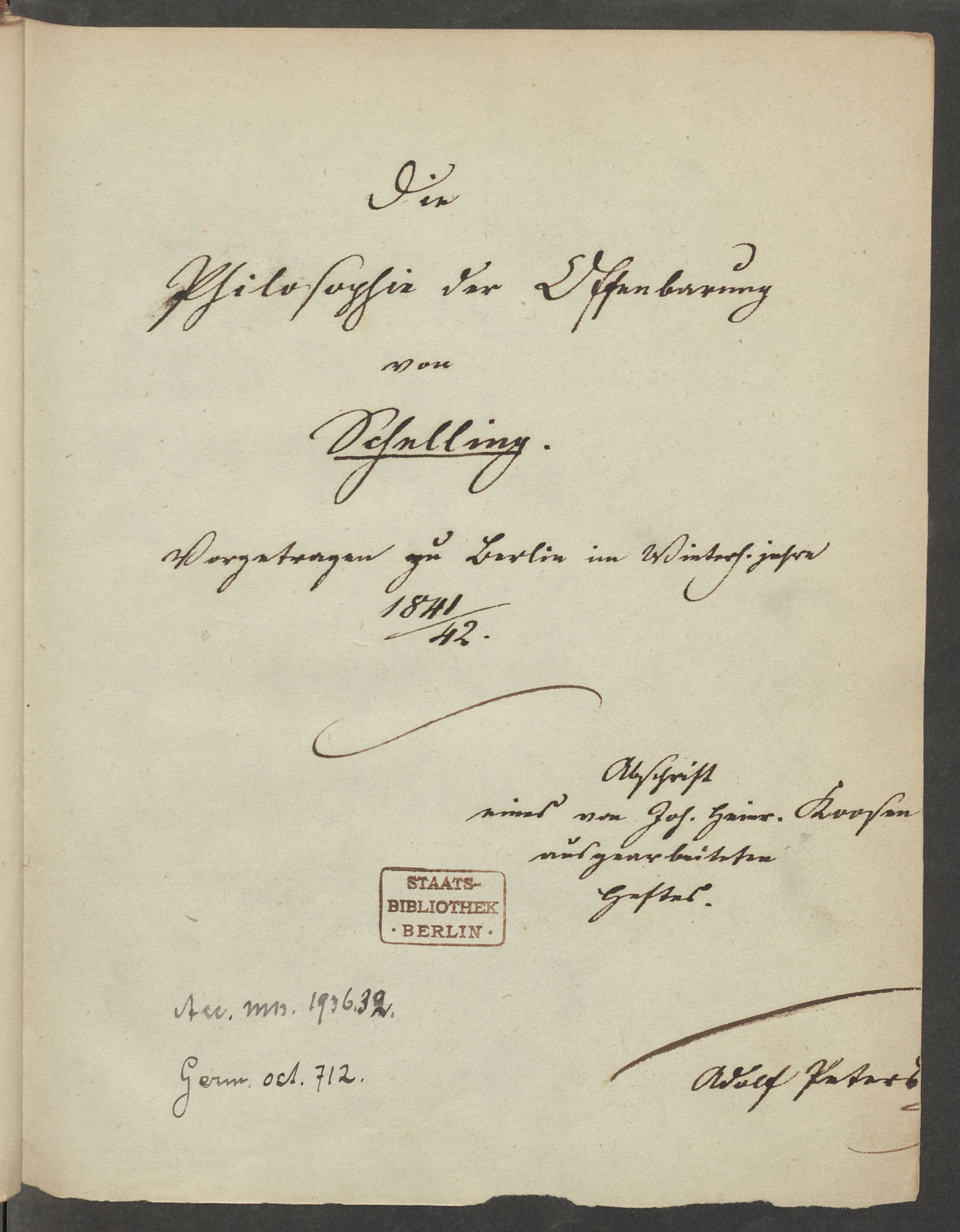 Philosophie der Offenbarung vorgetragen