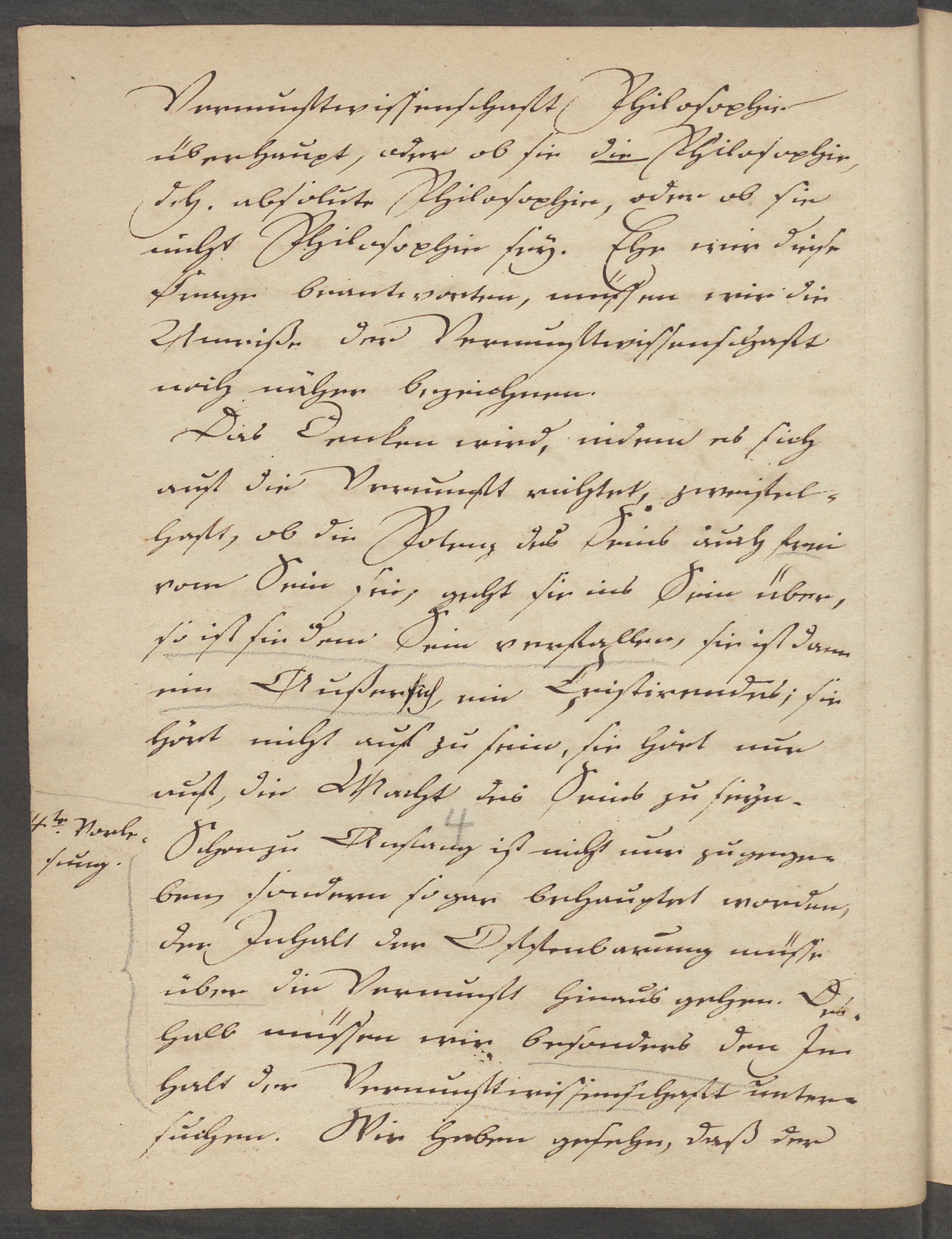 Jedermann setzt voraus, daß es eine Vernunft giebt, daß sie ferner schon Potenz des Erkennens ist, denn darum heißt sie eben Vernunft, weil sie Alles vernehmen muß und nicht apriori erfüllt ist.