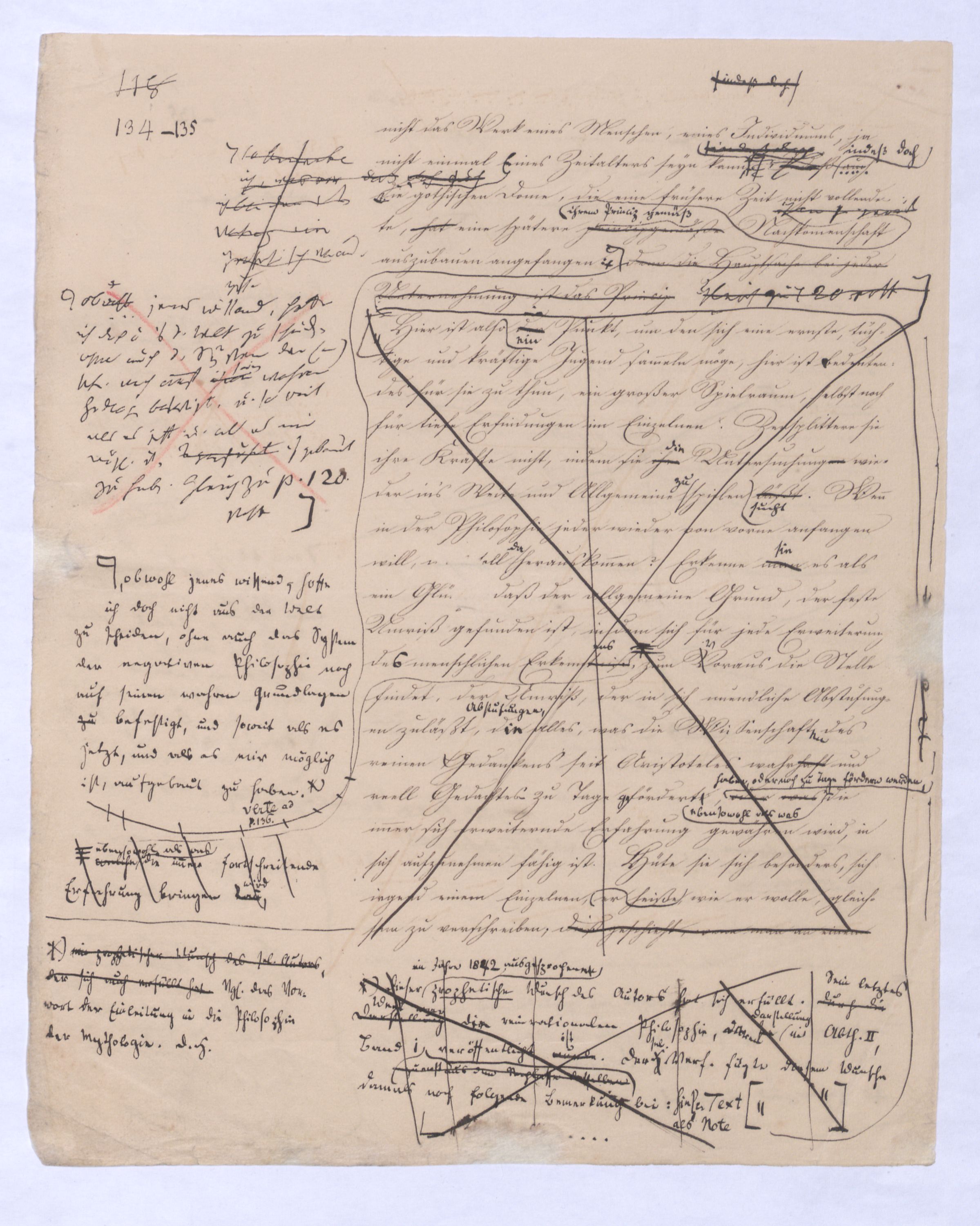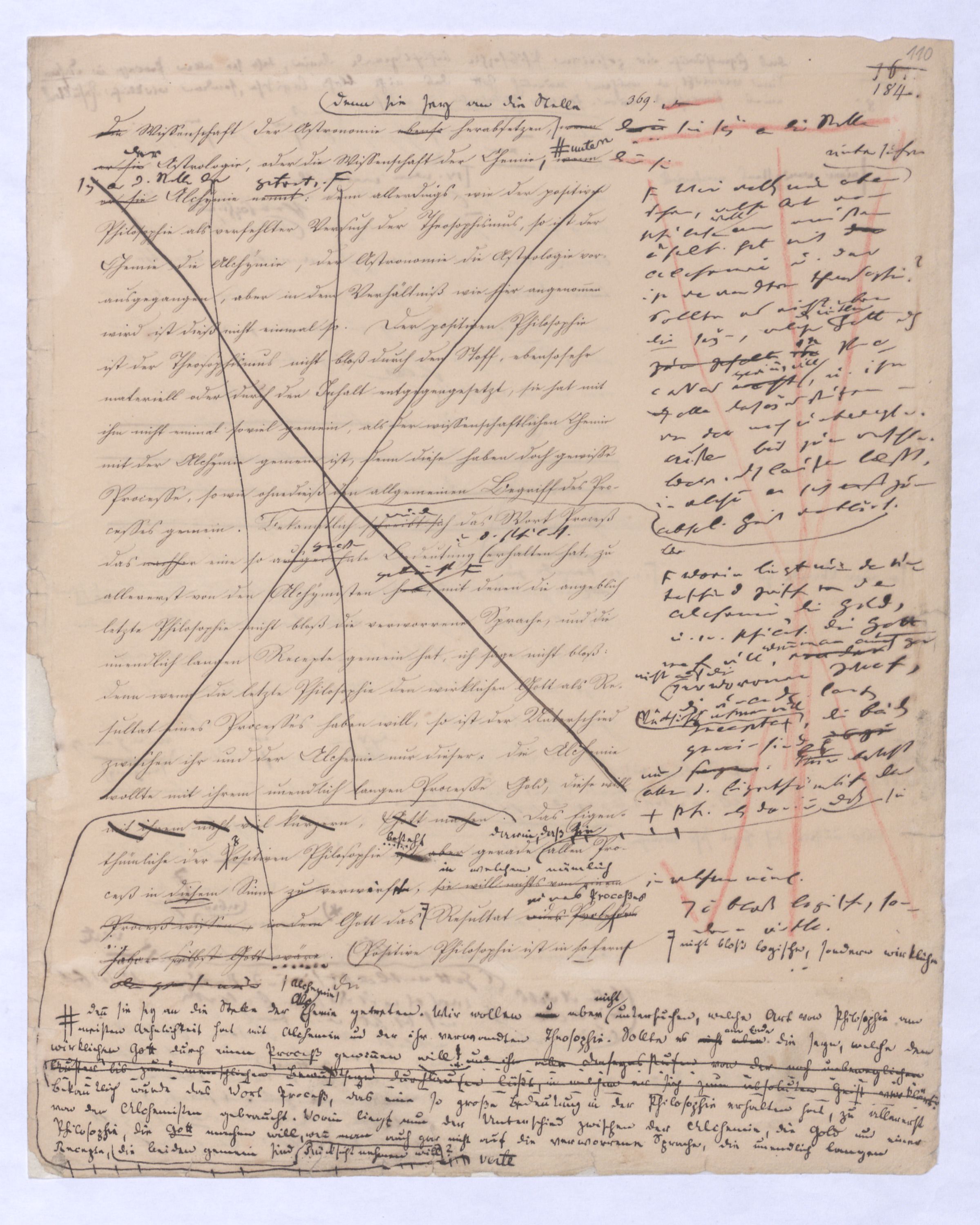 Lehren eines mystischen Empirismus bildeten schon im Mittelalter, und wieder nach der Reformation bis in unsere Zeit hinein einen Gegensatz gegen die bloß rationelle Philosophie; einen Gegensatz, den diese mir gänzlich überwinden konnte. In wie ferne nun jene mystischen Lehren sich fortwährend neben den rationellen behaupteten, zum Beweise sagte ich, daß ihnen eine Forderung zum Grunde liegt, welche sie selbst zwar nur auf eine unwissenschaftliche Weise erfüllten, welche aber auf eine wissenschaftliche allgemeine überzeugende und einleuchtende Art zu erfüllen auch der Philosophie bis jetzt nicht möglich gewesen sey, weßhalb sich dann die Philosophie zu diesen Lehren immer bloß abweisend und ausschließend zu verhalten vermochte. Um so mehr wird es nothwendig seyn, auch vorläufig schon Aufschluß darüber zu geben, wie sich die von uns in Aussicht gestellte positive Philosophie zu diesen mystischen Lehren verhalte. Denn identisch kann sie doch mit keiner derselben seyn, schon darum, weil sie Philosophie, also Wissenschaft zu seyn behauptet, jene dagegen, wenn nicht alle auf speculativen Inhalt, doch alle auf wissenschaftliche Form und Methode verzichtet haben. Ich habe dieß Verhältniß der positiven Philosophie zu den verschiedenen Lehren, welche die Philosophie auf Offenbarung gründen wollen, ebenso wie zu der theosophischen Lehren auch in den Vorlesungen des vorangegengen Winters ausführlich erörtert, was soll man nun von der Wahrheitsliebe oder Beurtheilungskraft derjenigen sagen, die fortfahren, die positive Philosophie entweder als Philosophie darzustellen, welche die Offenbarung als ihre Quelle voraussetzen; womit sie dann gänzlich aufhören würde, Philosophie d. h. vom freien Denken erfundene Wissenschaft zu seyn, oder die es noch für ein schlagendes Argument gegen sie halten, wenn sie sie einfach für Theosophie ausgeben? Über das Verhältniß der positiven Philosophie zur Offenbarung wird die Folge dieser Entwicklung eine ausführliche Erörterung herbeiführen; auf den Theosophismus aber werden wir nicht mehr zurückkommen; daher ich bei dieser Gelegenheit einigesmich nun besonders über das Verhältniß der positiven Philosophie zum Theosophismus bemerkenmich erklären willehe ich nämlich die Eigenthümlichkeit der wissenschaftlichen Methode entwickle, durch welche sich doch positive Philosophie ebensosehr von jeder rationellen Philosophie, als auf der andern Seite vom Theosophismus unterscheidet. Besondere Erfindungsgabe gehört wenigstens nicht dazu, die positive Philosophie mit dem Theosophismus in Verbindung zu bringen. Natürlich hat man den Mund erst zu voll genommen und gläubigen Zuhörern von einer letzten Philosophie gesprochen, nach der und außer der es keine andere geben könne, so muß dem eine Philosophie, die sich als etwas völlig Neues und Anderes selbst gibt, ungelegen seyn. Doch braucht man darum nicht zu verzweifeln, das Feld des Denkens ist ja groß, die Literaturgeschichte unermeßlich, und es wird nicht schwer seyn, in ihr eine bekannte oderobgl. in d. Folge die Entw. d. Methode d. + Ph. die noch von selbst bestimmter zeigen wird, daß diese, ebenso wenig als sie mit den ration. Systemen, ebenso wenighattehaben kann. Die + Ph. ist aber eine neue Erfindung u. die besonders den früheren Großsprechereien von Vollendung d. Philos. In d. Ratph. wenig Erf. gebe denn diese Philos.Allein wenn irgend einer neuen, und früheren Großsprechereien gegenüber ungelegenen Erfindung sich zeigt (u. eine solche war die + Ph. aber suchte man in der Literaturgeschichte irgend einen Titelsehrzieml. ungelegen kommtkam. Unter solchen Umständen ist es ganz gewöhnl. daß man in der Literaturgesch. sich nach irgend einem Titel, oder irgend einer verrufenen Categorie aufzutreibenumsieht, unter die man die neue Erscheinung bringen kann, ist diese gefunden, so istauf solche Weise hofft man sich aller Mühe des Widerlegungens zu überheben. Aber ichHabe ich aber nicht selbst hatte ja die Veranlassung gegeben, die positive Philosophie mit dem Theosophismus in Verbindung zu bringen; hatte ich doch selbst? Wurde doch erklärt, siejene wolle dasselbe, was die theosophische Lehre gewollt habese anstrebe; der Unterschied sey nur, daß sie es auf wissenschaftlichem Wege wolle, jene aber ihre Zweckdiesere denn seinen auf, zum Theil schwärmerische Weise zum erreichen gesucht habe. Hier musste man allerdings auf eine Prüfung der Methode eingehen, wollte man dieß nicht, oder konnte man diese Methode nicht als wissenschaftlich unbegründet aufzeigen, so könnte irgend ein armseliger Ignorant aus dem Volke dieZweck zu kommen suche. So war d. Verhältniß allerdings bestimmt worden. Aber mit diesem Recht könnte man dann irgend ein Unwissender die Wissenschaft der Astronomie ebenso herabsetzen, wenn er siedenn wenn sie sey an die Stelle d. Astrologie, oder die Wissenschaft der Chemie wenn er sie, denn sie sey an d. Stelle der Alchymie nennt:getreten. denn allerdings, wie der positiven Philosophie als verfehlten Versuch der Theosophismus, so ist der Chemie die Alchymie, der Astronomie die Astrologie vorausgegangen, aber in dem Verhältniß wie hier angenommen wird ist dieß nicht einmal so. Der positiven Philosophie ist der Theosophismus nicht bloß durch den Stoff, ebensosehr materiell oder durch den Inhalt entgegengesetzt, sie hat mit ihm nicht einmal soviel gemein, als der wissenschaftlichen Chemie mit der Alchymie gemein ist, denn diese haben doch gewisse Processe, so wie ohnedieß den allgemeinen Begriff des Processes gemein.Wir wollen nun aber untersuchen sehen, welche Art von Philos. wohl am meisten Ähnlk. hat mit der Alchemie u. der ihr verwandten Theosophie? Sollte es nicht aber die seyn, welche den wirklen Gott durch zum Inhalt deseinen Processes machtgewinnen will, u. ihn durch alle Daseynsstufen – von dem noch unbewegln. außen bis zum erschl. Bew. durchlaufen laeßt, in welchem er sich erst zum absol. Geist erklärt. Bekanntlich schreibt sichwird das Wo