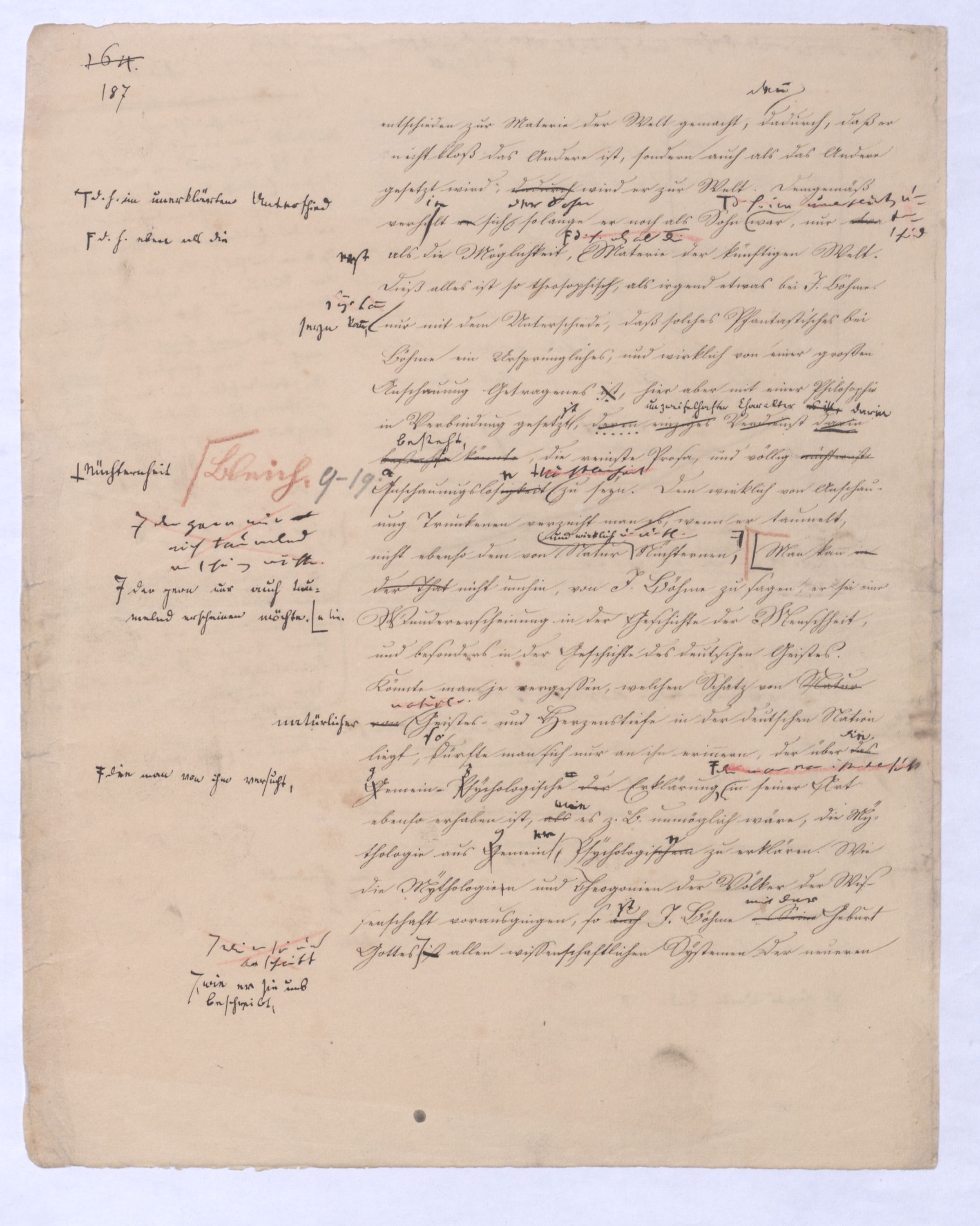 . Nur kann Kann man nun einen abs. Geist denken, der nicht zugl. abs. Pers., ein abs. sr. s. Bewustes waere? Vielleicht meinten sie, dieser absolute Geist sey eben nicht eine freihandelnde Persönlichkeit, nicht freier Weltschöpfer u. s. w., dabei haben sie aber auch nicht überlegt, daß Hegel am Ende der ganzen Entwicklung, wie er sagt, sich dendas konnte freil. der Geist nicht seyn, der erst am Ende, post festum kommt, nachdem alles gethan ist, u. der nichts zu thun hat, als alle vor u. unabh. von ihm vorhandenen Mom. des Proc. unter sich aufzun. Aber eben das hatte auch Hegel zuletzt gefühlt, u. in späteren Zusätzen diesen absoluten Geist sich zur Schöpfung einer Welt frei entschließen, sich mit Freiheit zur Welt entäußern