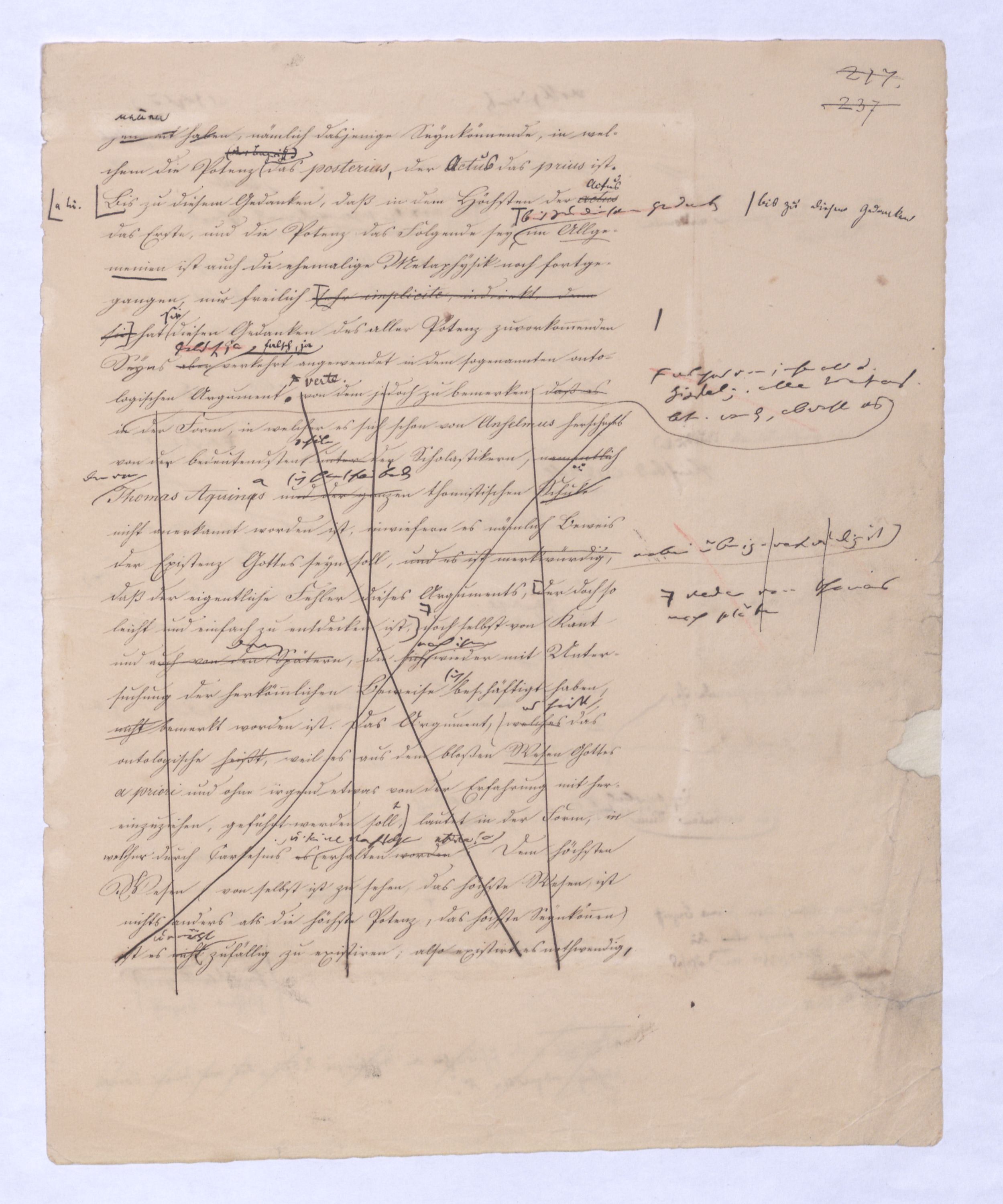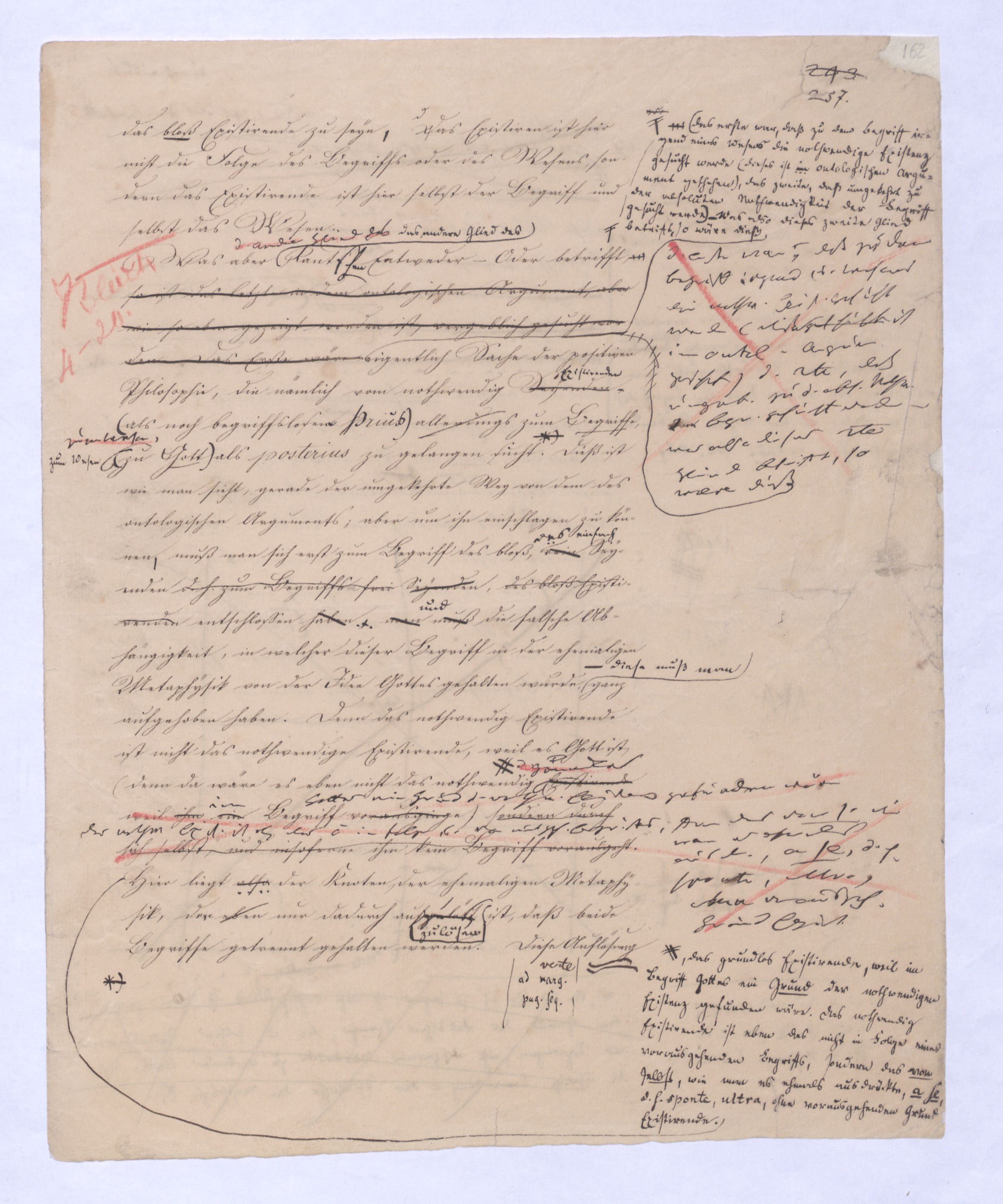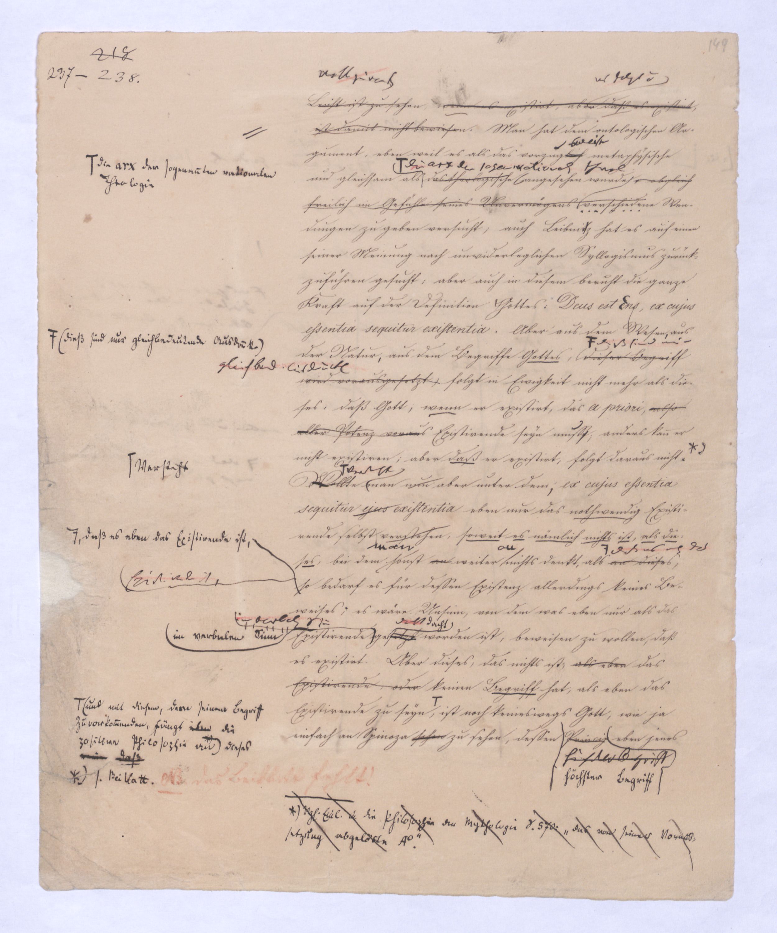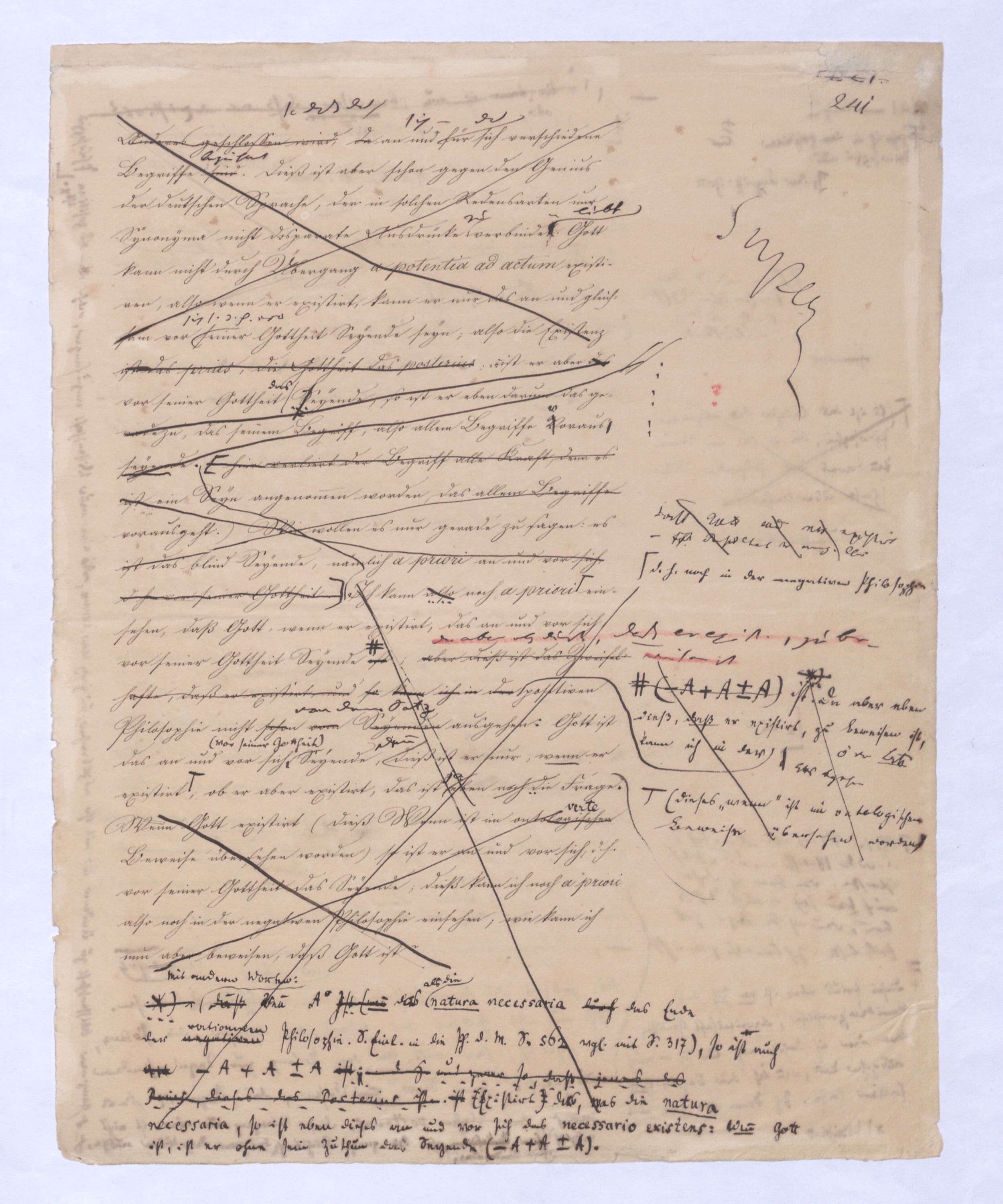 sehr implicite, indirekt, denn sie hat sie diesen Gedanken des aller Potenz zuvorkommenden Seyns aberfalsch, ja verkehrt angewendet in dem ontologischen Argument, . Man hat dem ontologischen Argument, eben weil es als das vorzüglich metaphysische und gleichsam als von dem jedoch zu bemerken, daß eswelches von jeher als d. Gipfelp. allen Wesens betr. worden, obwohl es in der Form, in welcher es sich schon von Anselmus